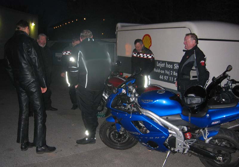 Hyggesnak forsinker lidt og kl 18.45 kunne vi køre ud fra tanken og starte på turen.