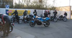 der Hans-Jørgen på en sort Speed Triple 2004, og mig selv (Kristoffer) på en blå