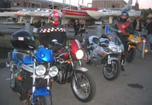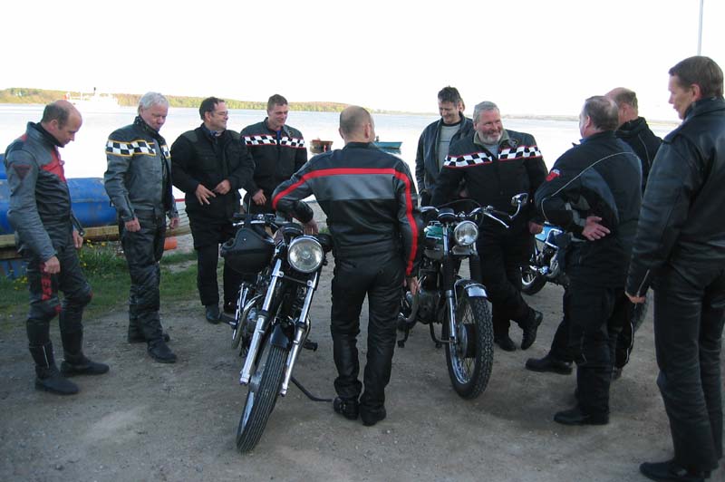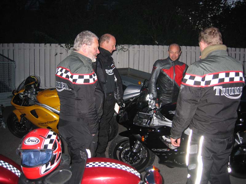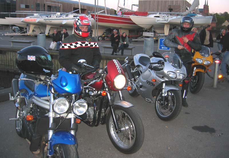 på sin blå Sprint RS fra 2004, Ib på sin sorte Daytona 2004, Michael på sin sorte