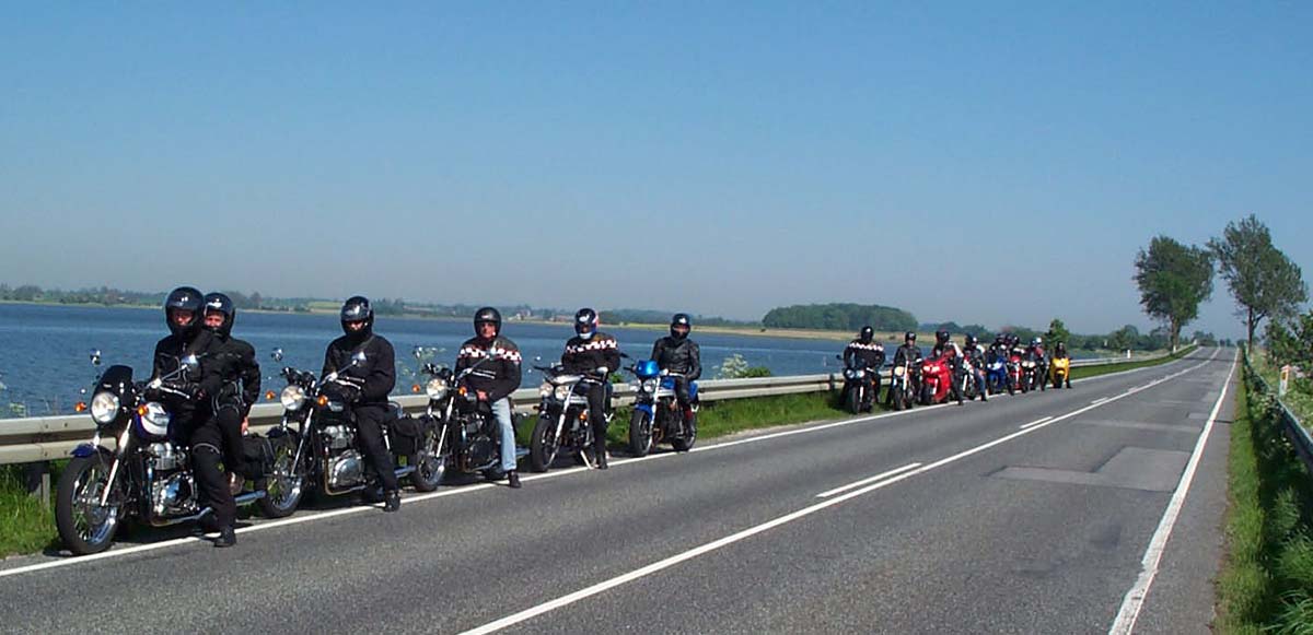 skulle af sted, det var 16 motorcykler og de 5 af dem var nye. Kolonne kørsel kan