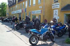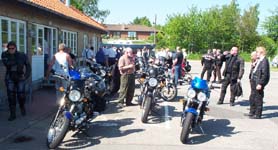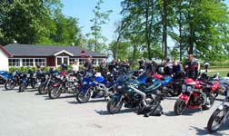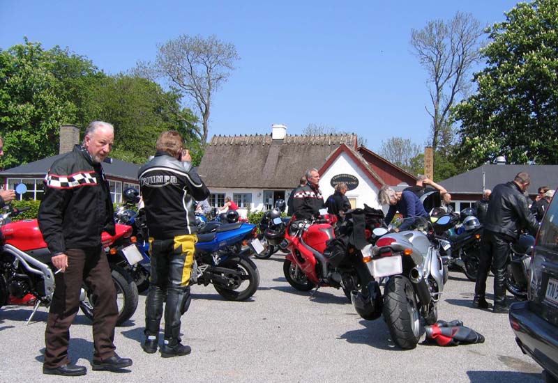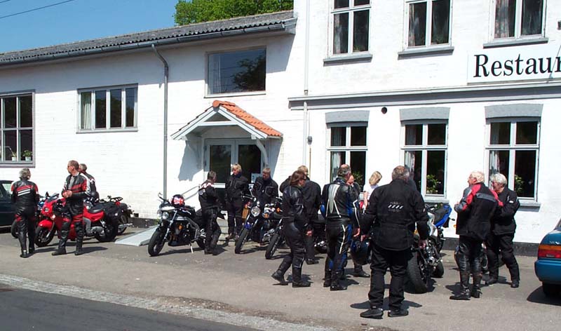 Ok, så tager vi af sted 21 motorcykler. Lige efter skoven drejer vi til højre ind på