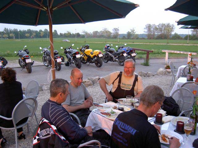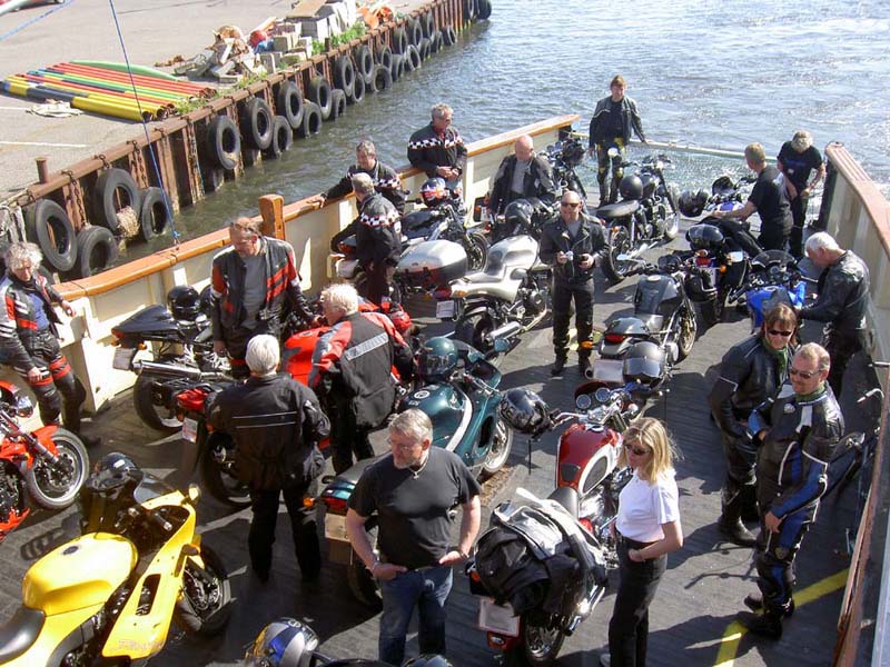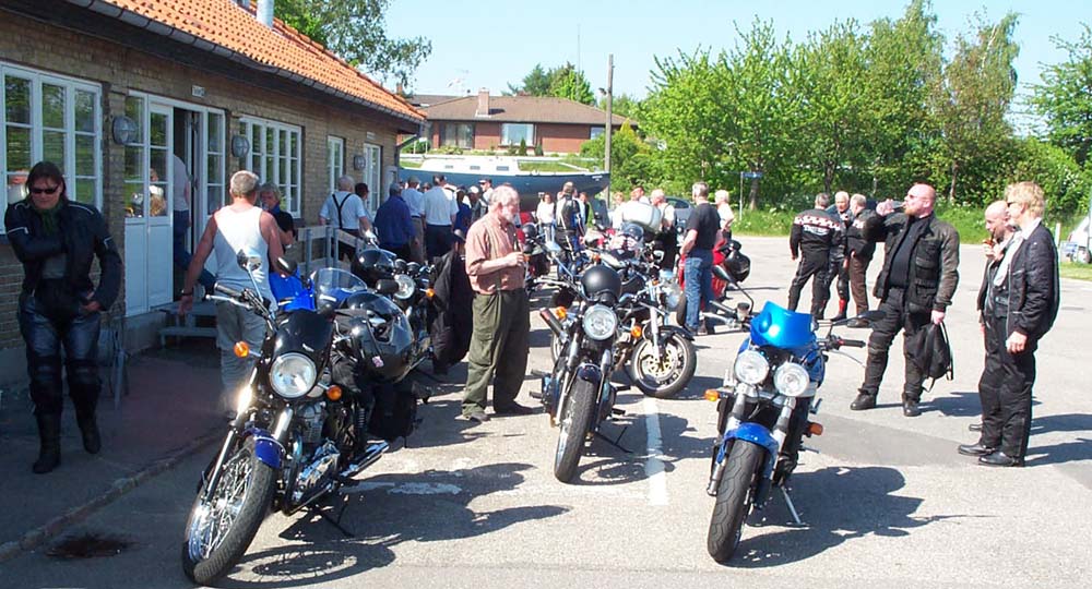2004 med sidetasker. Der var flere nye deltagere. Morten på en sort Bonneville 2004