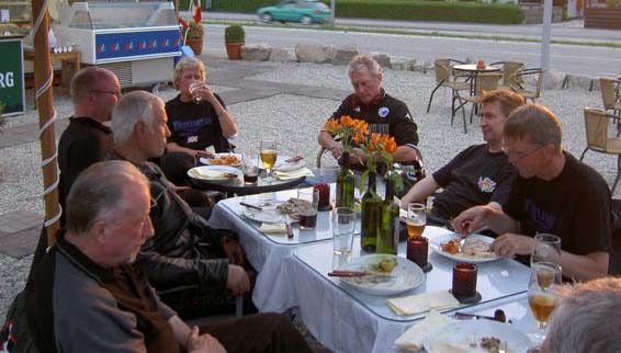 turistpølser fra den lokale havnegrill. OK vi mødes bare dernede. 12 af os kom