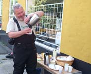 satte os ved bordene. Vi fik øl, cola og vand. Imens blev der opstillet en tag-selv