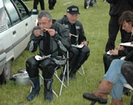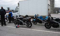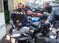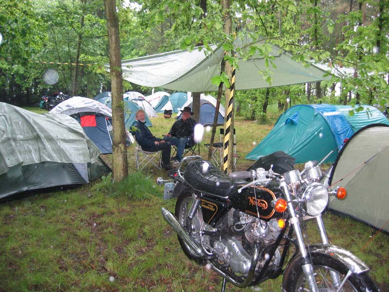 udendørs trods regnen. Vi hilste også på Michael (Bonneville & Monster) der også