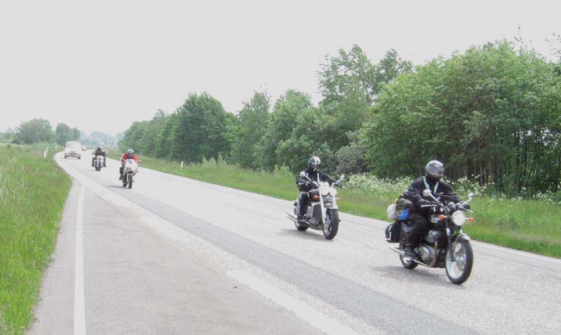 Der er lidt støvregn ved afgangen kl. 12. Men vi tager af sted mod Roskilde og