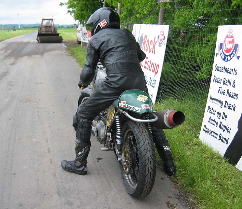 ved selve løbet. Det er ret vigtigt at starte så langt op i feltet som muligt. Specielt på denne tilfældigt afspærrede "bane" der bestod nærmest af forskellige markveje med skiftende asfaltkvalitet. Der er overvejende meget smalt og ikke megen plads til at overhale.