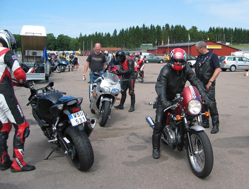 kommer på sin Thunderbird 1999 eller deromkring. Martin dukker op på sin blå TT600.