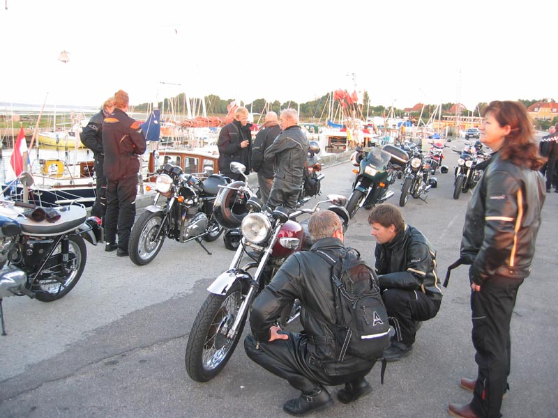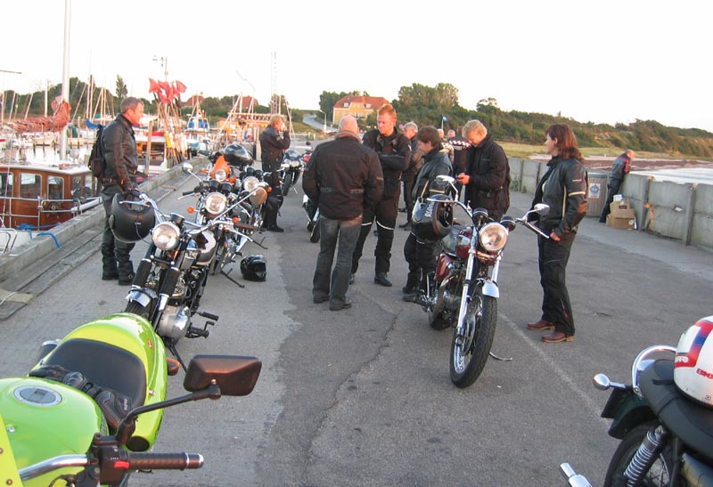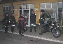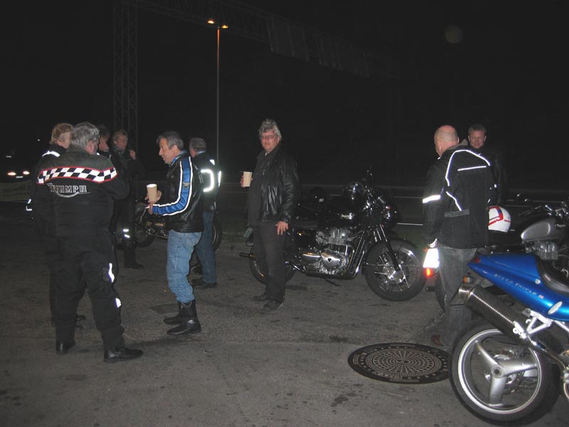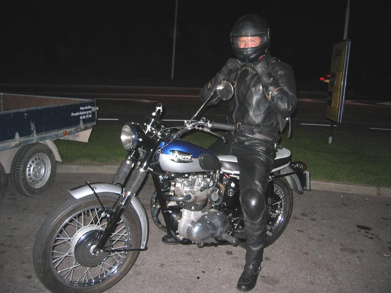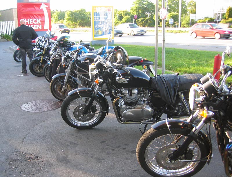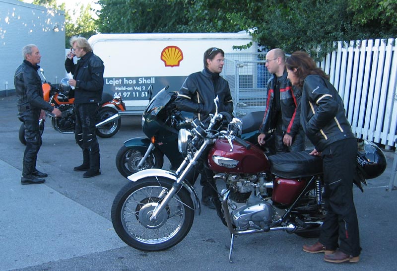 John kommer på sin grønne Speed Triple 1998 og Ib på den sorte Daytona 2004. Så er