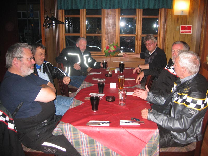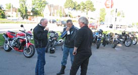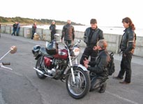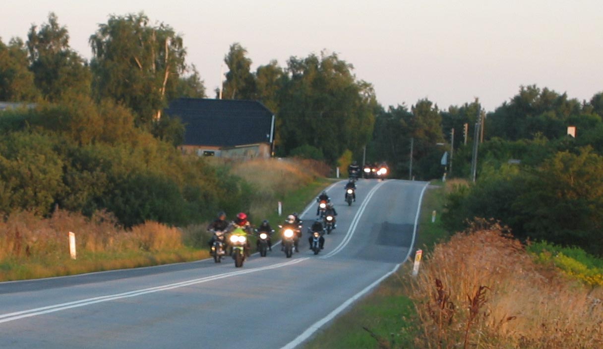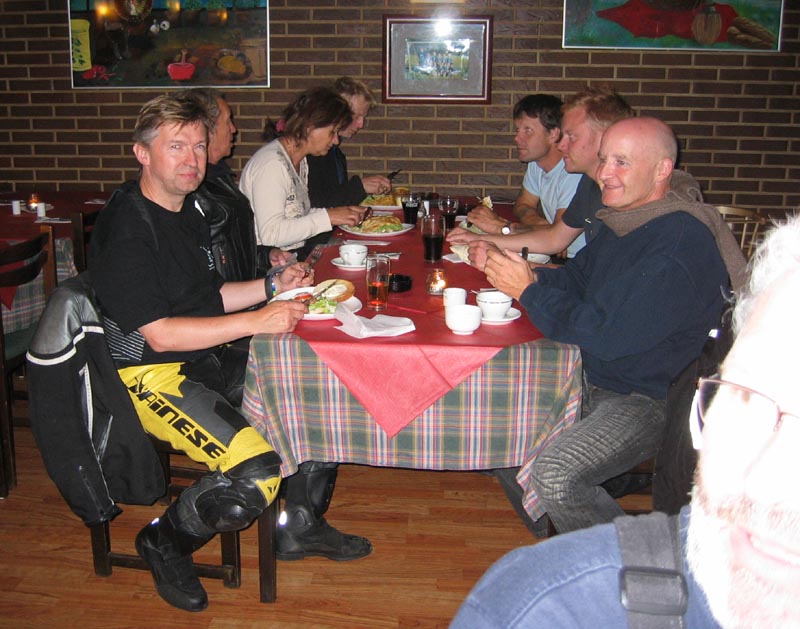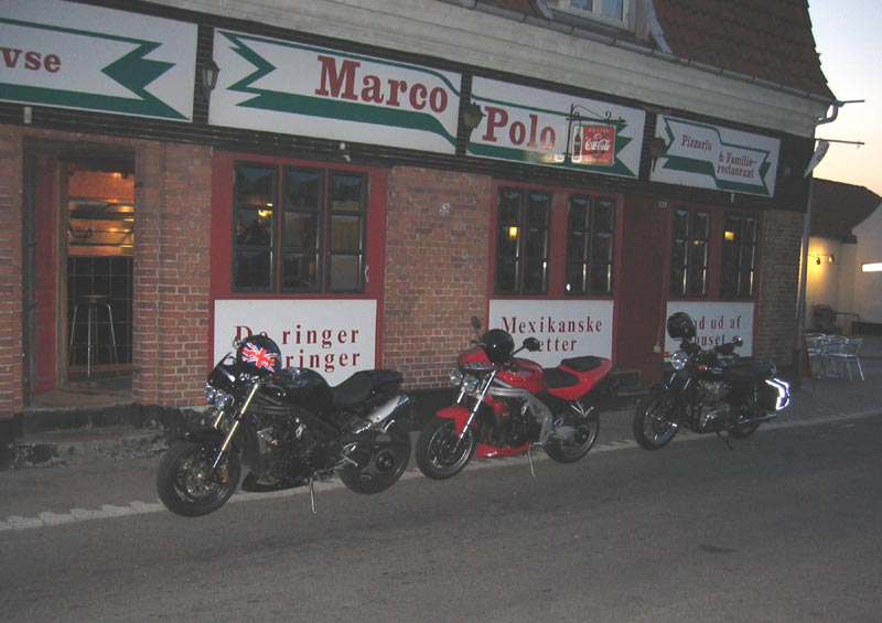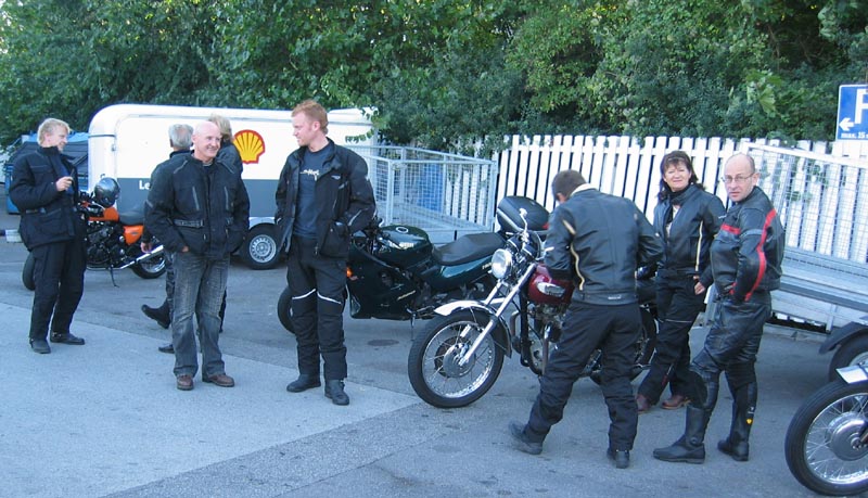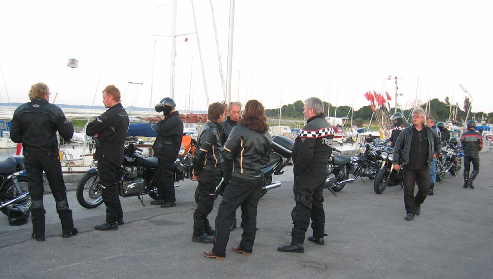 John kommer på sin grønne Speed Triple 1998 og Ib på den sorte Daytona 2004. Så er