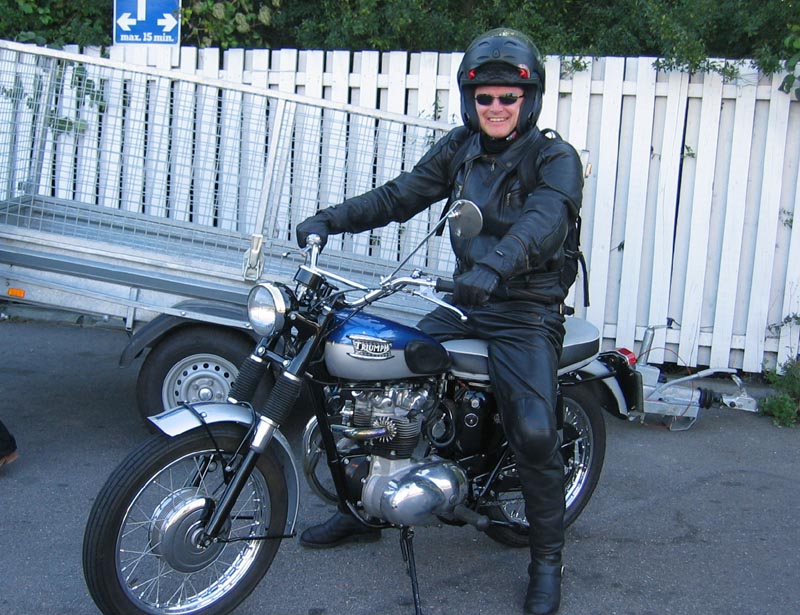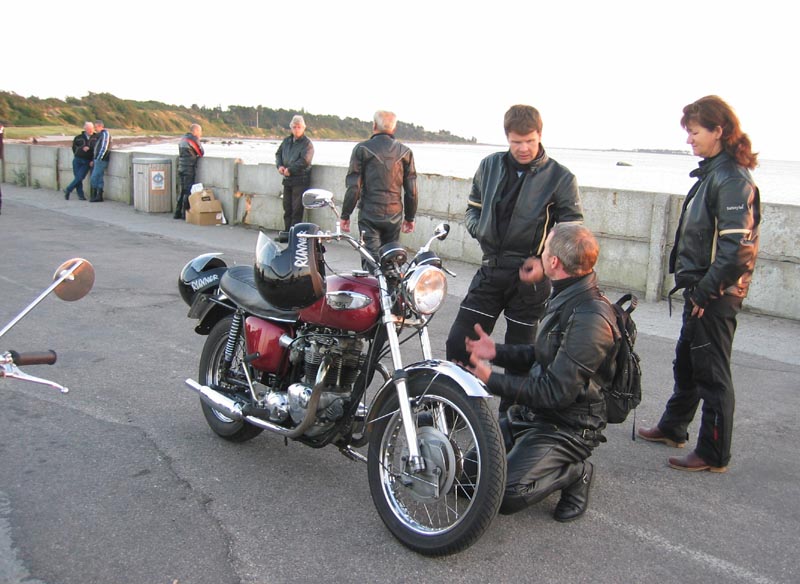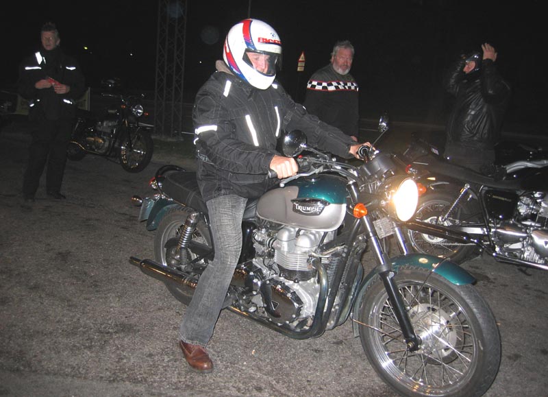 Ramon er også ny deltager og han kommer på en grøn/sølv Bonneville 2001. (Velkommen!)
