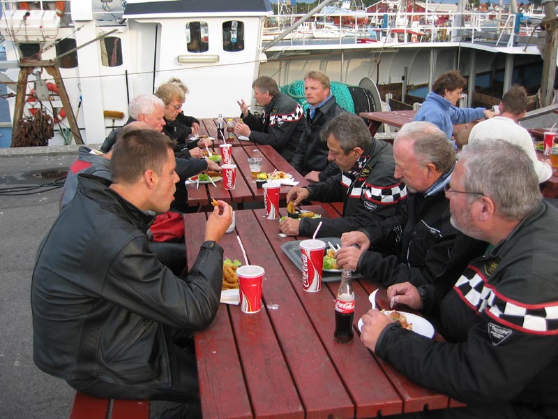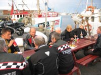 Hyggesnak og spisning i dejlig havnemiljø.