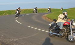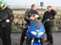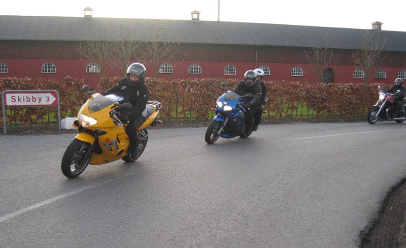 Så er det Henrik på en blå Daytona 955 fra 2002. Og en ny deltager, Per på en hvid/orange