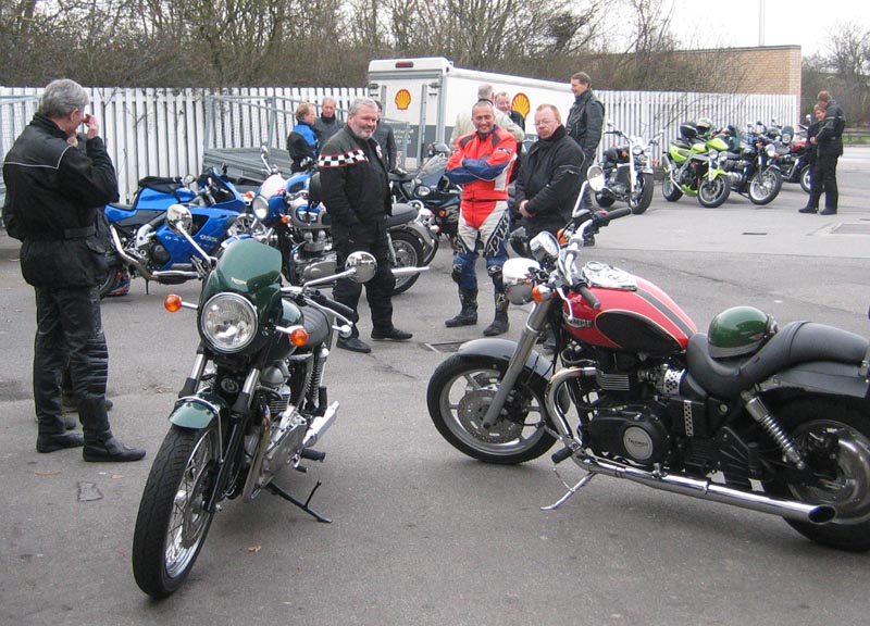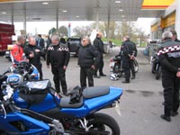 Thruxton, fylder op med benzin og er klar 25 minutter før afgang. Mogens som har set