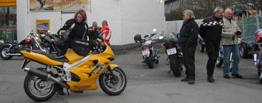 på en gul TT600 fra år 2000 tror jeg. Lis har kørt girls only turene, men er med første