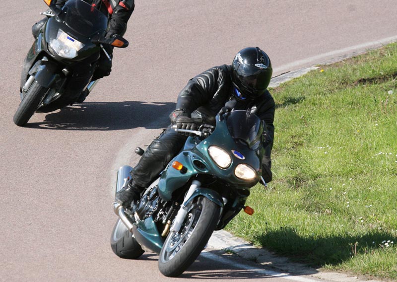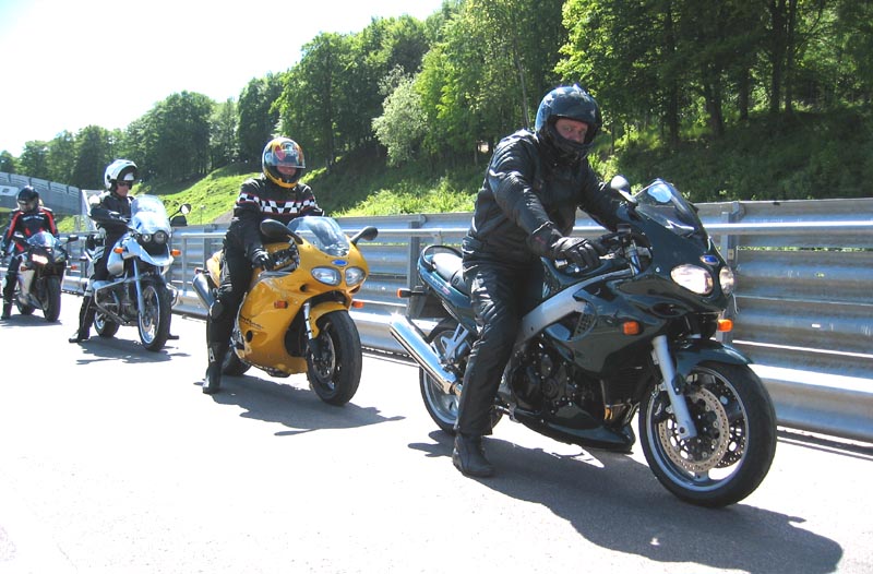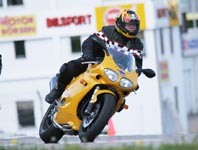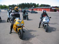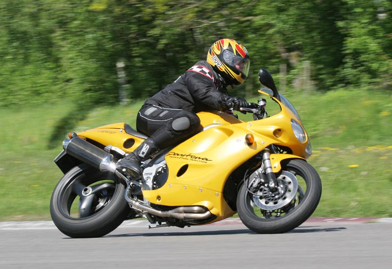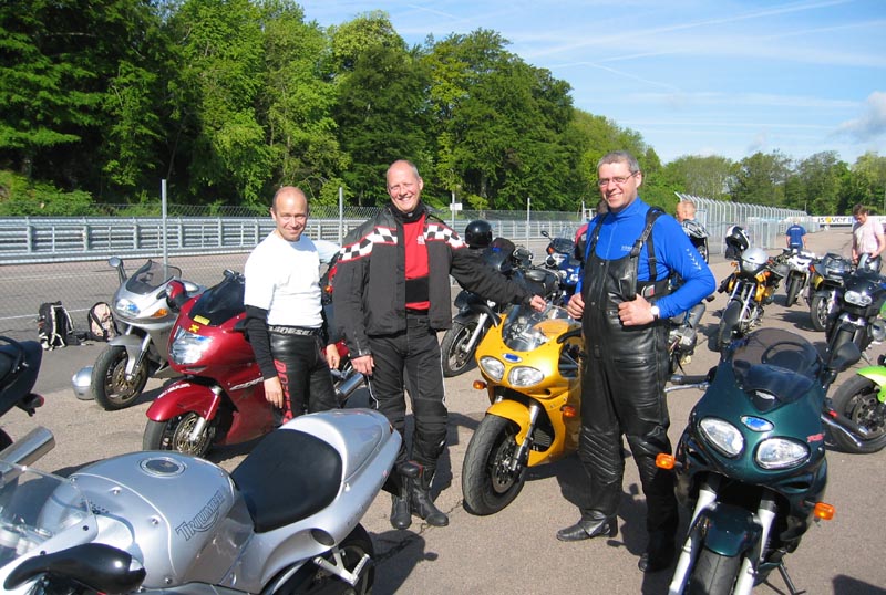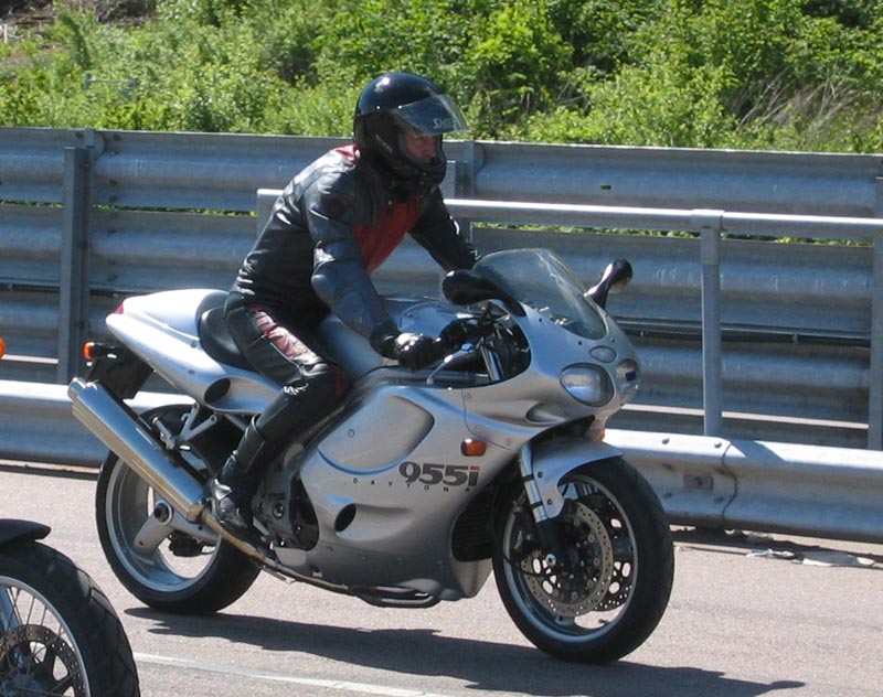 på den gule Daytona T595 (955cc). Dejligt med to nye mand, der skal hygge sig og forbedre