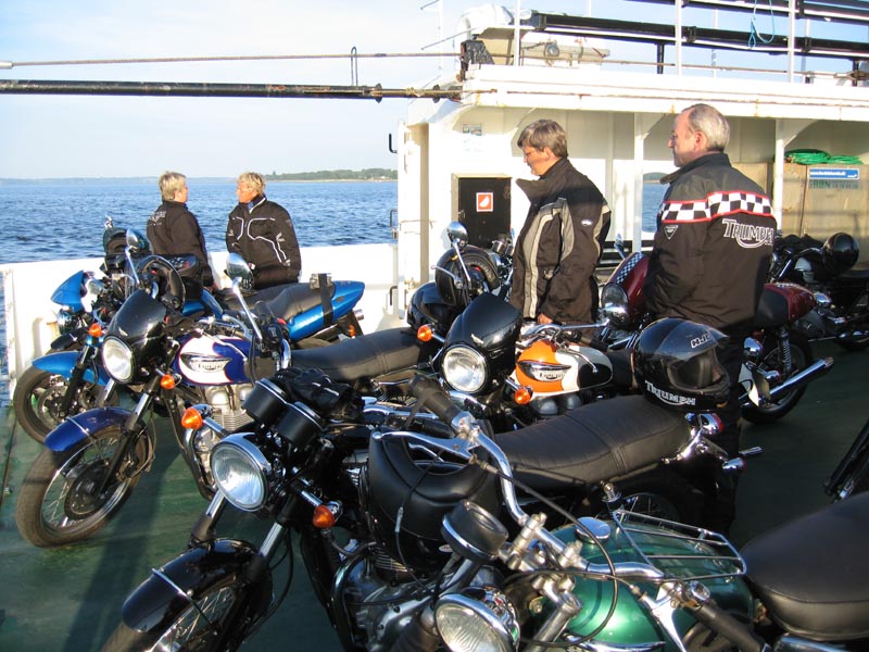 Triple 2004. Så kommer Lars på en sort Bonneville 2004, Steen på en gul Daytona 955