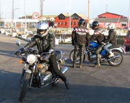 Thunderbird -59, og Poul på sin sølv Norton Commando -77. Vi tager over broen og