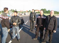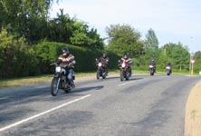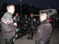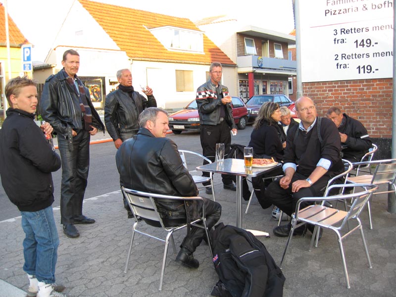 rød Thruxton 2004 som han har lånt af Bo. Endvidere har vi Hans "Luske" på en sort/rød