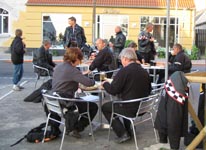 Så tager vi til Pizza stedet, Marco Polo. Her får vi lidt at spise og drikke. Vi møder