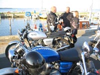 er Peter på den sølvfarvede Bonneville America 2006 og Claus på en Bandit 600 -01.