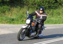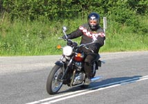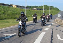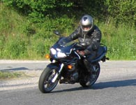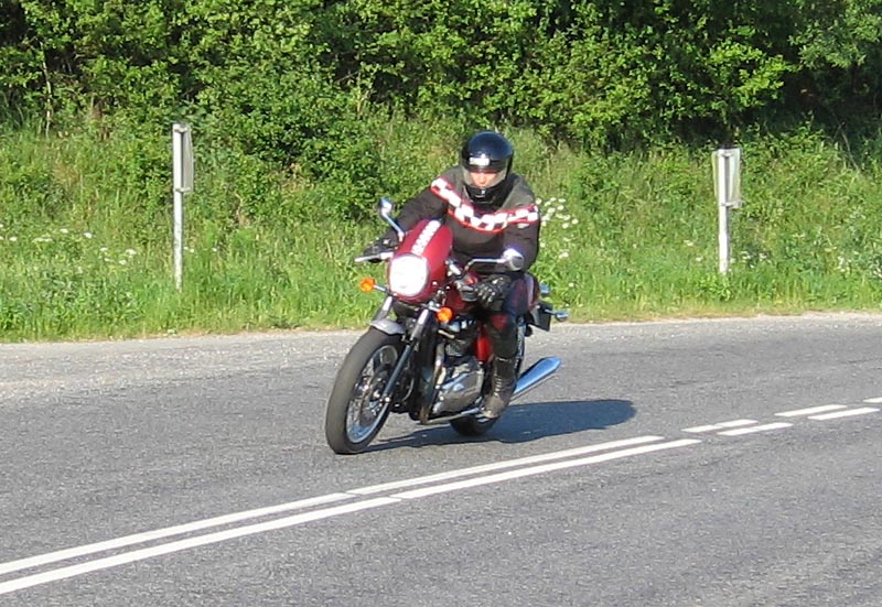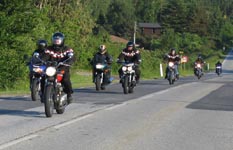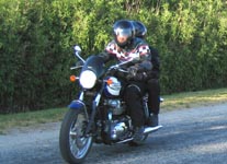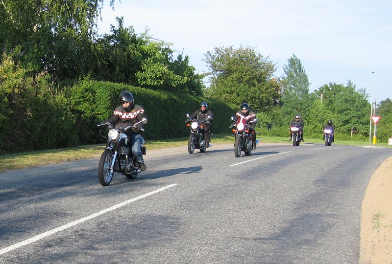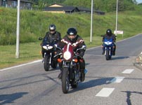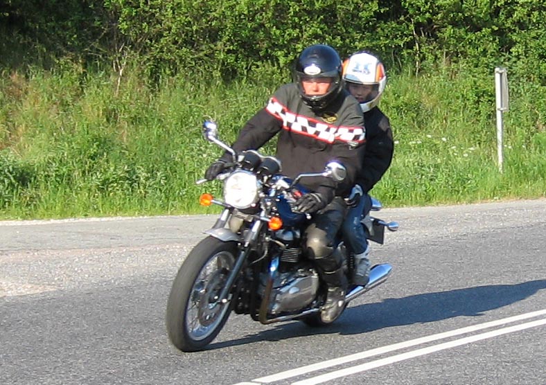 Bonneville 2005 og hans datter Karina på en blå Suzuki GS500E. Så kommer Henrik med