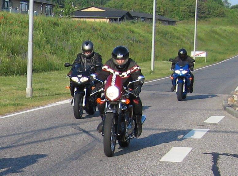 Poul på sin Trophy 1200 fra 1995, Lars på den mørkeblå Sprint RS 2001 og Frank på en