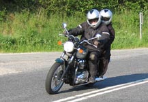 Gitte på en sort Bonneville 2004, Finn og Lene på deres Bonneville T100 jubilæumsmodel