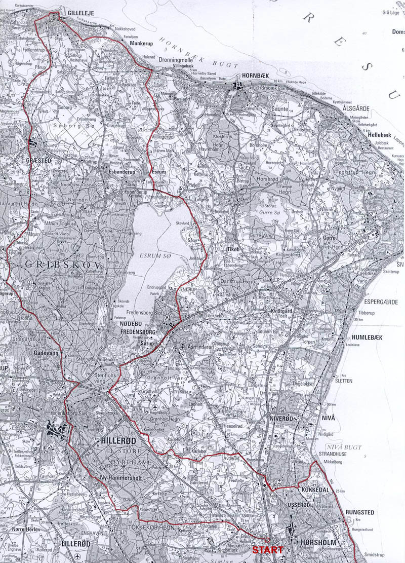 Så kommer vi forbi Fredensborg, Grønholt og Karlebo til Hørsholm. Vi drejer ind på