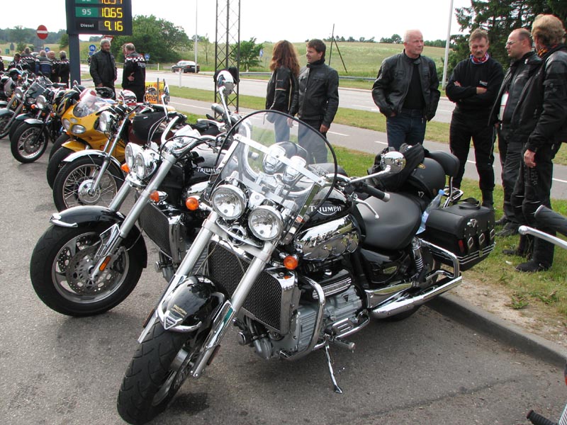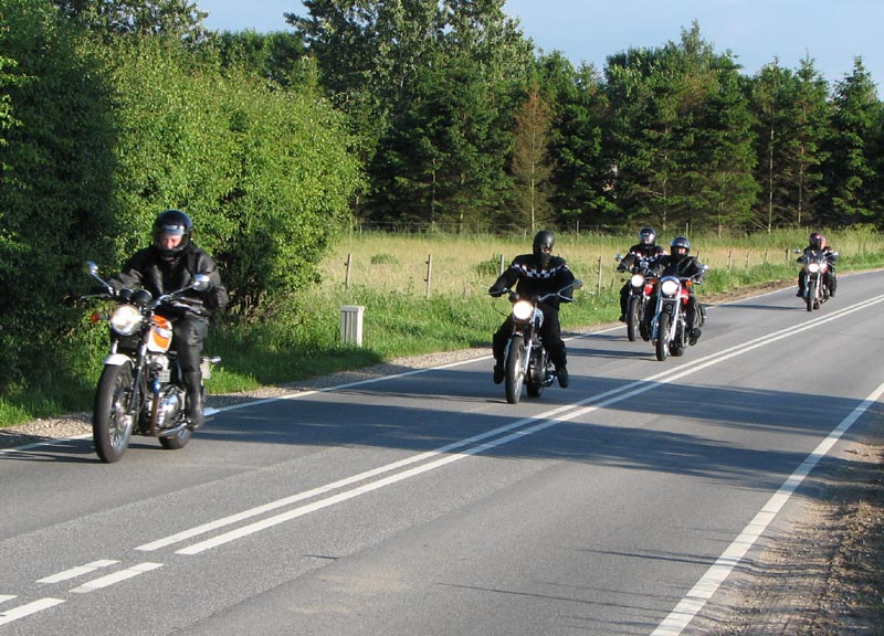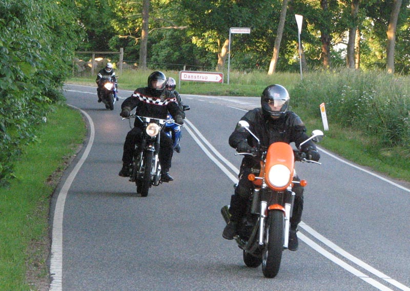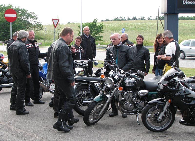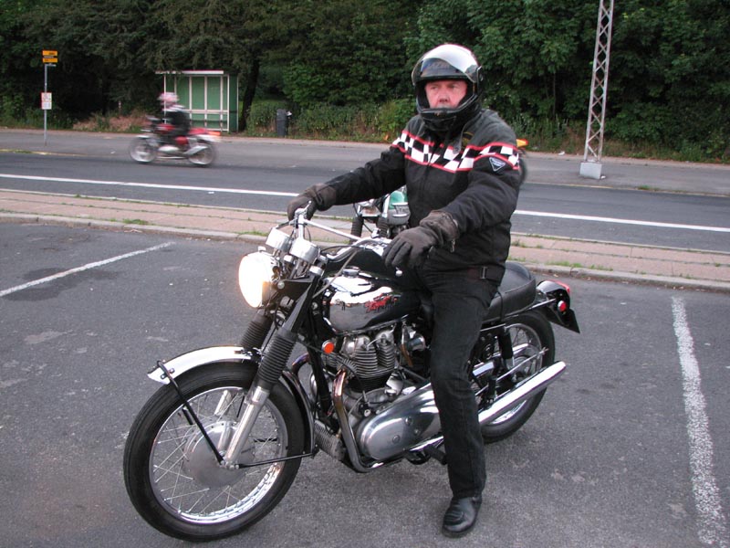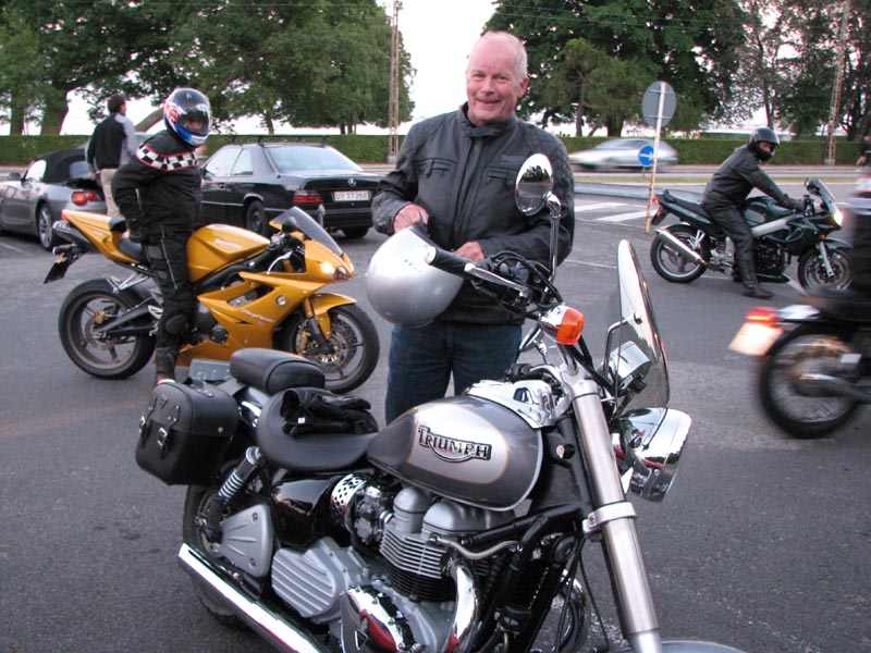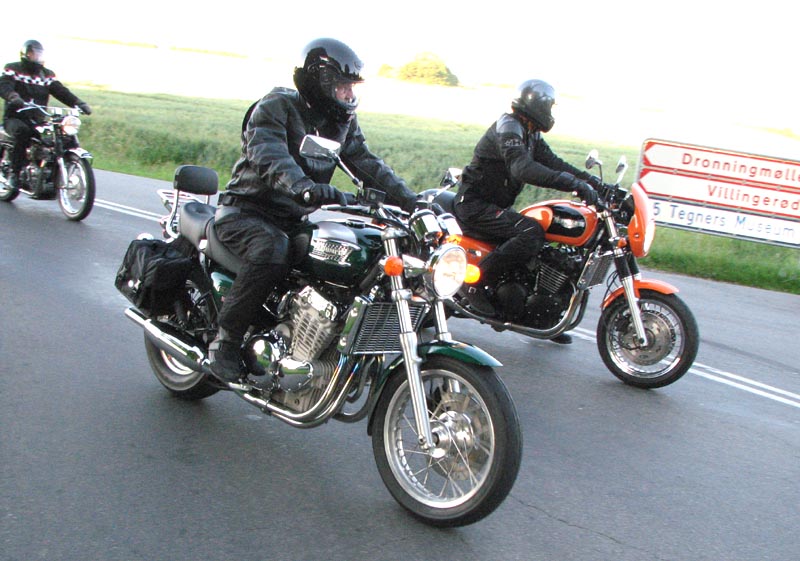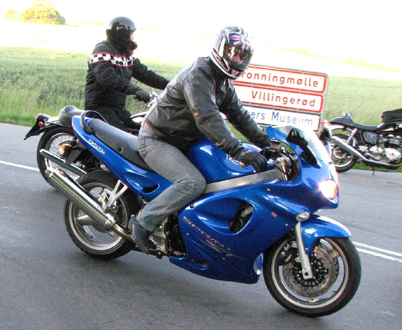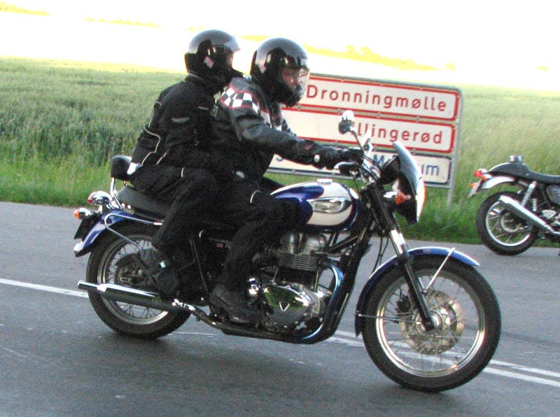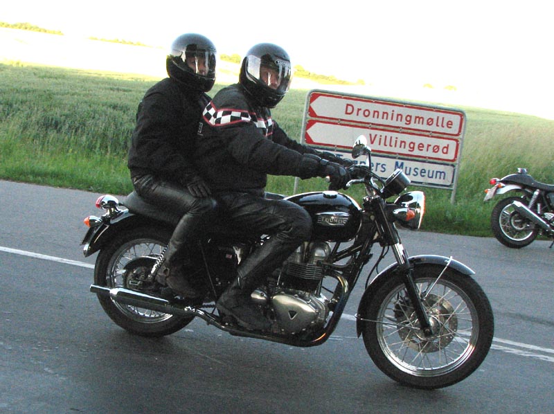 Der er Jørgen på en sort Rocket III -06 (med vindskærm), Ole på en rød/sølv Tr6R -69,