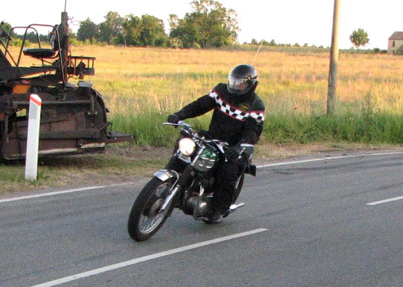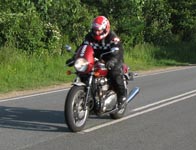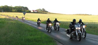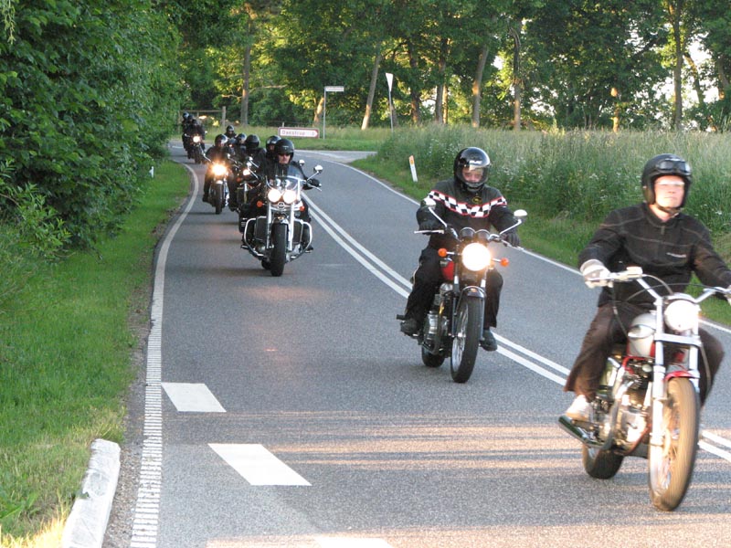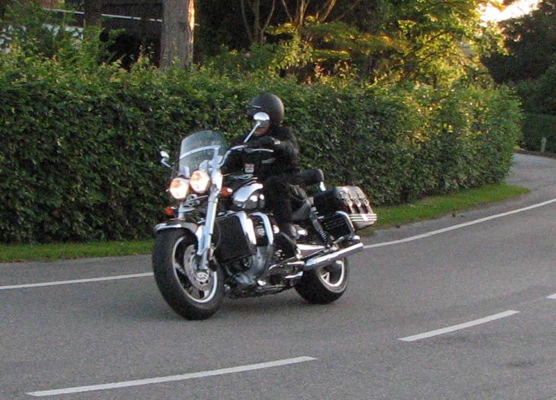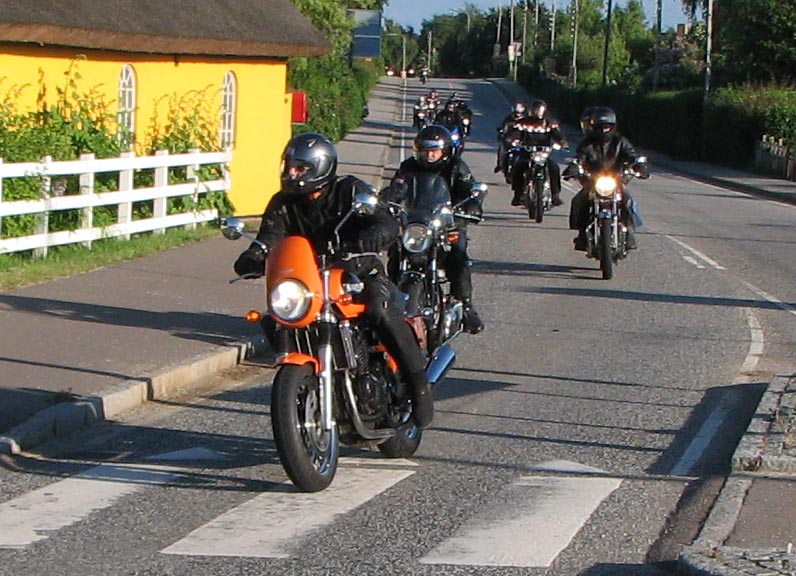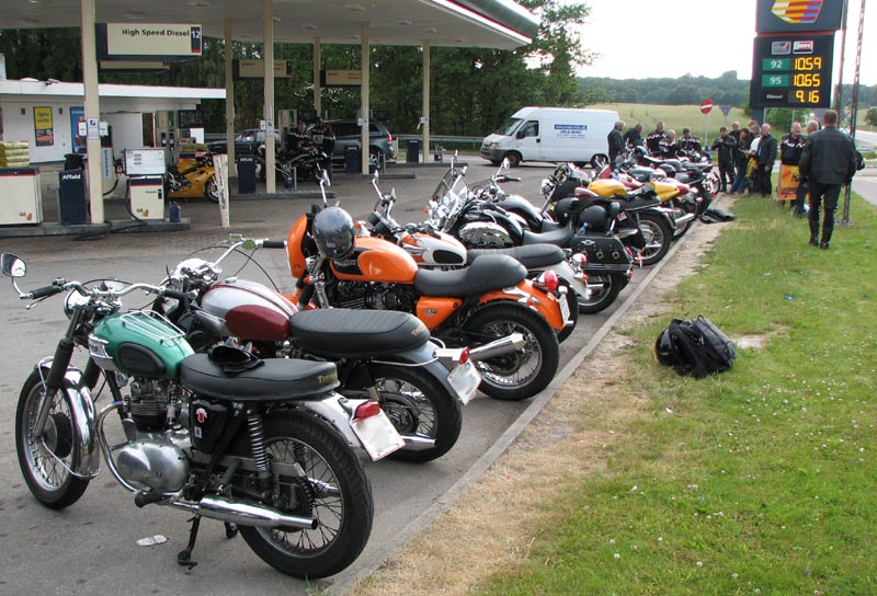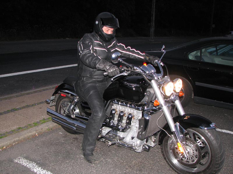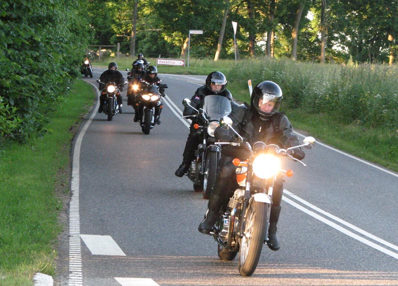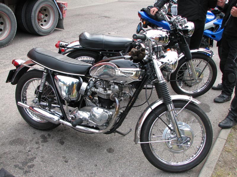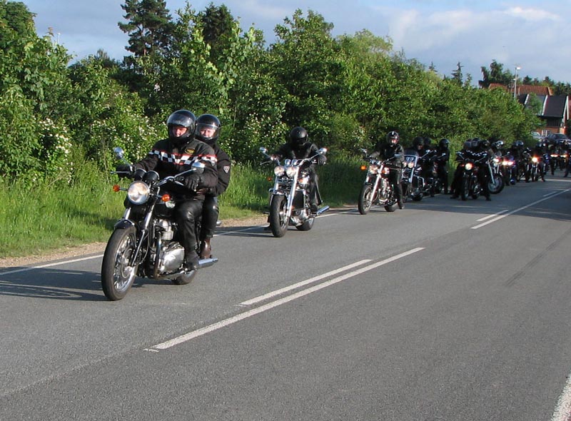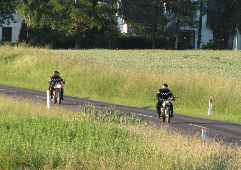 Der er Jørgen på en sort Rocket III -06 (med vindskærm), Ole på en rød/sølv Tr6R -69,