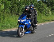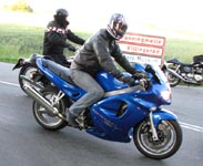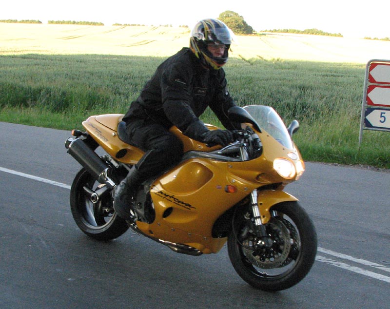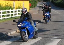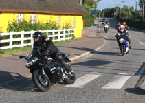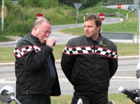 Bonneville -05, Hans-Jørgen på en gul Daytona 675 -06 democykel, Tonny på en GSXR1000 -06.