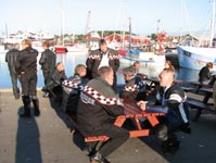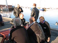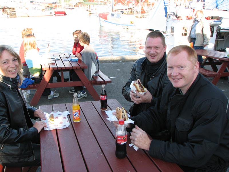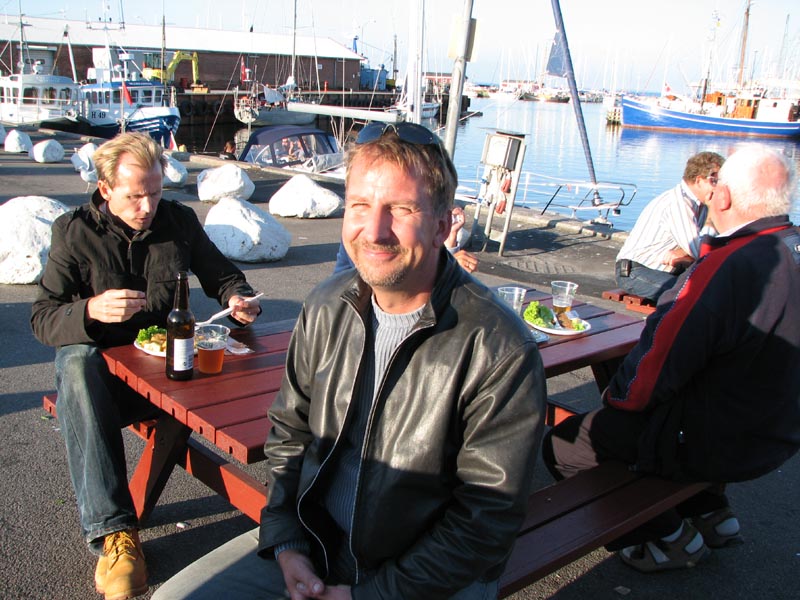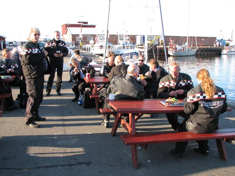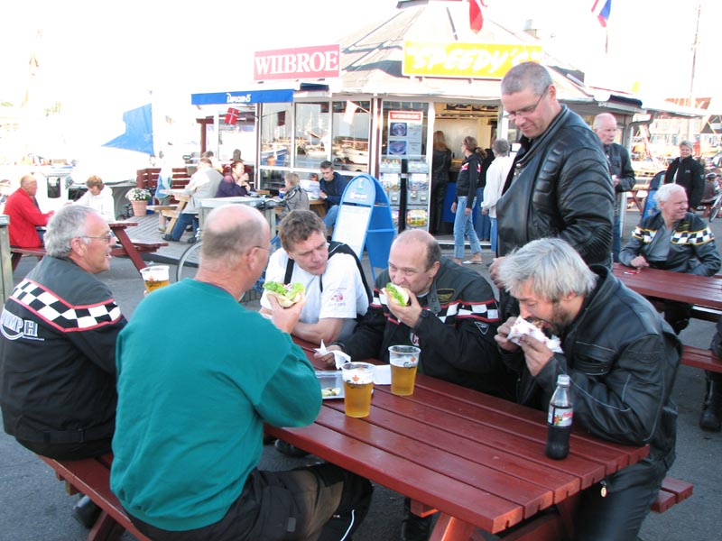 I Gilleleje kører vi ned til havnen for en pause med mad og forfriskninger. Her ser