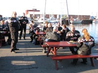 check-point i Gilleleje. Hyggeligt. Så er vi 33 cykler og 38 deltagere.