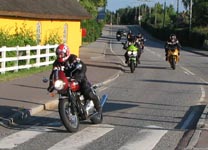 Thruxton -04, og Frank på en lånt blå Thruxton -06. Så har vi Bjørn på den orange