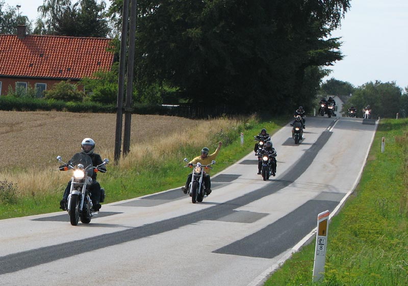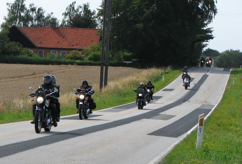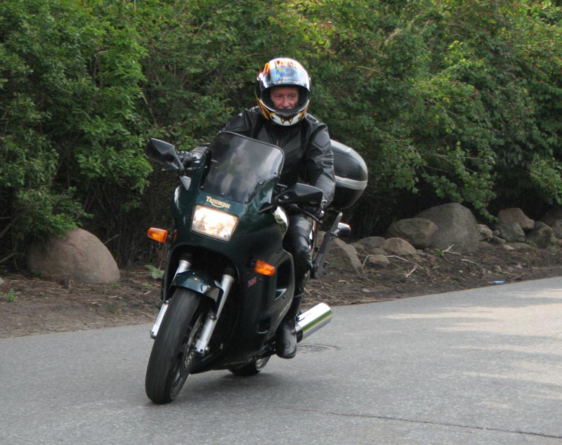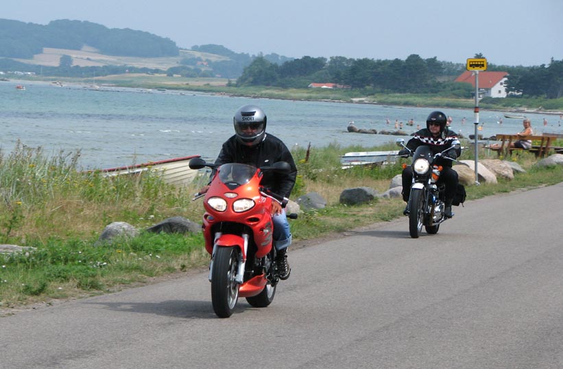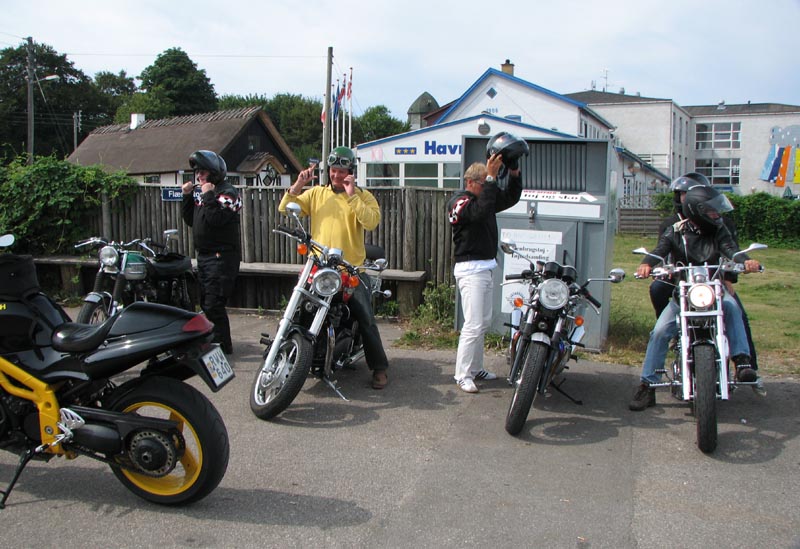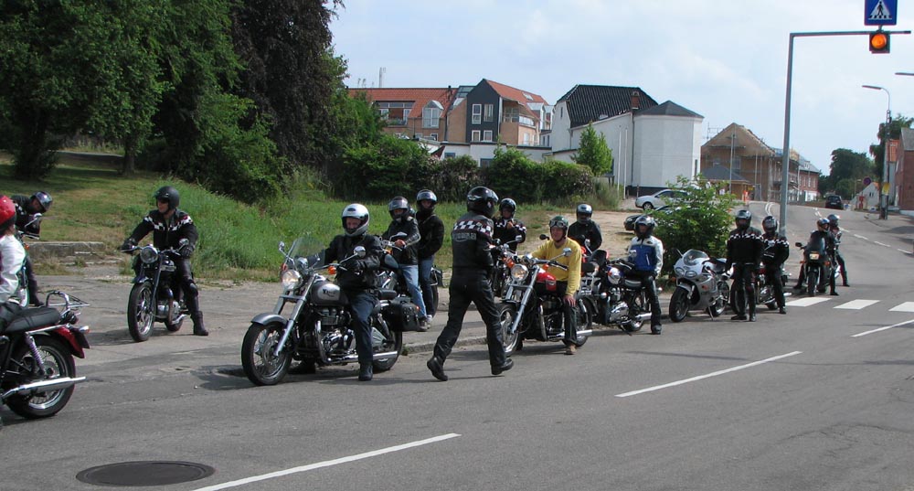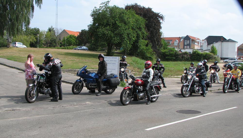 vil fange os på Munkholmbroen), Poul på den mørkegrønne Trophy 1200 fra 1995, Kai på