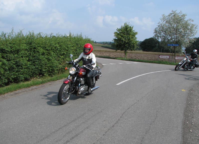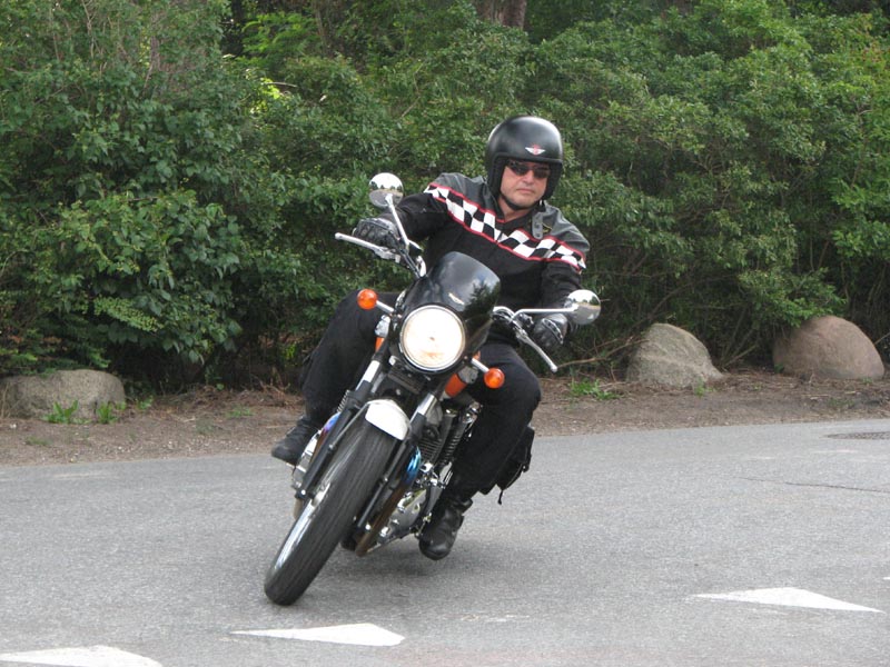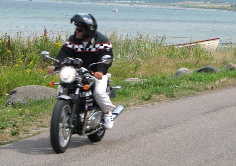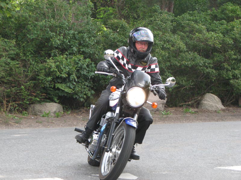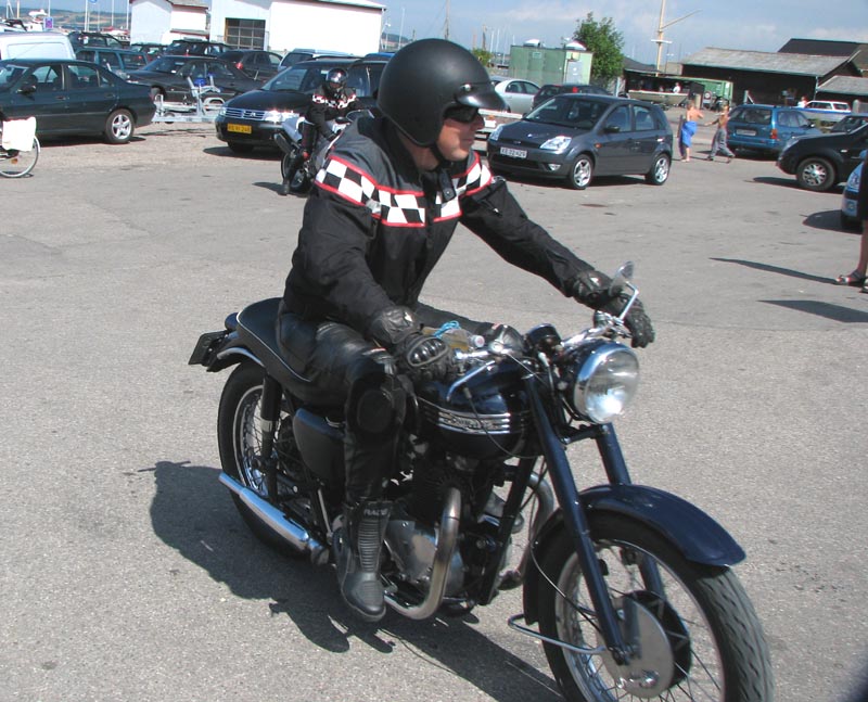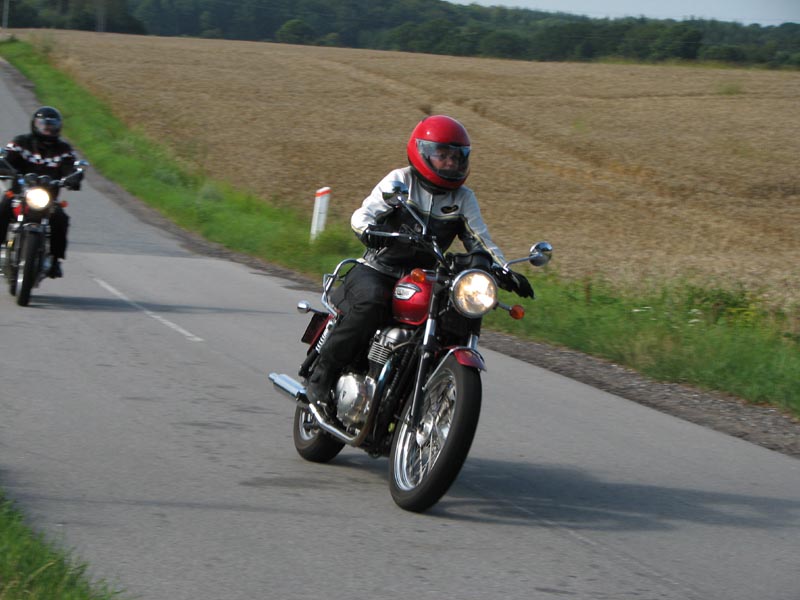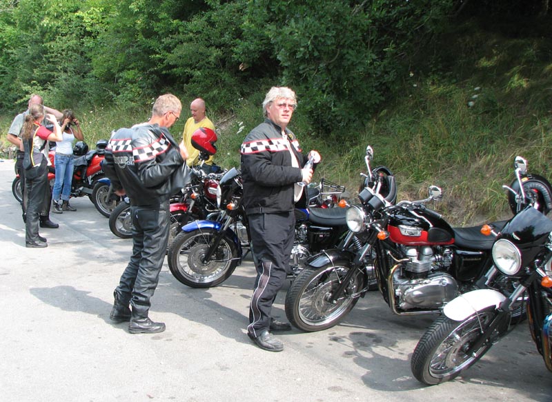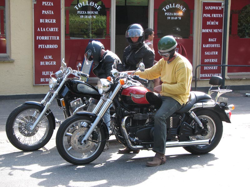 Jeg starter med at hilse på et par nye deltagere. Det er Andre på en sort Thruxton 2005