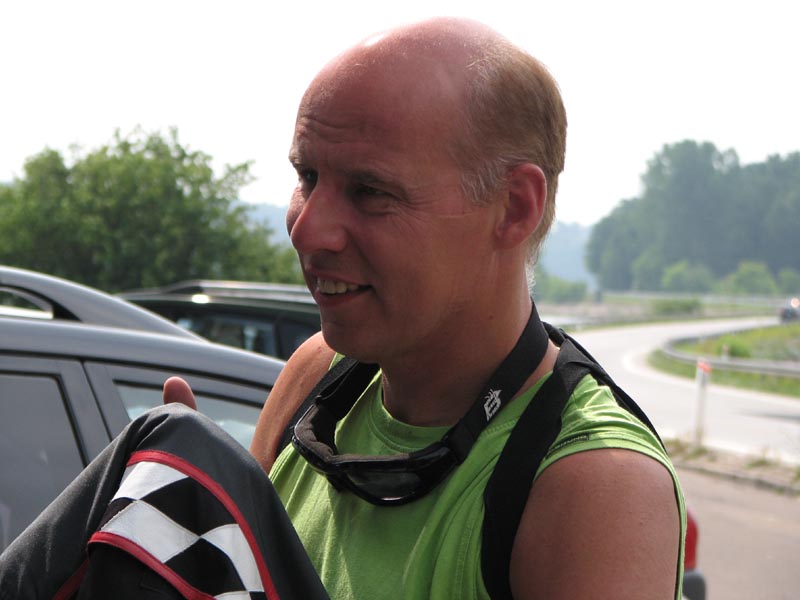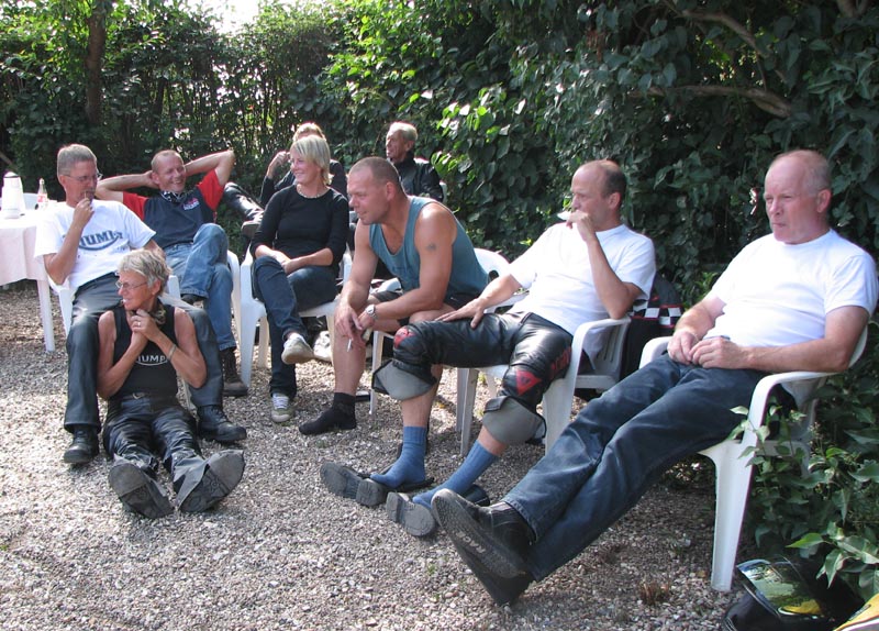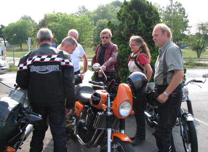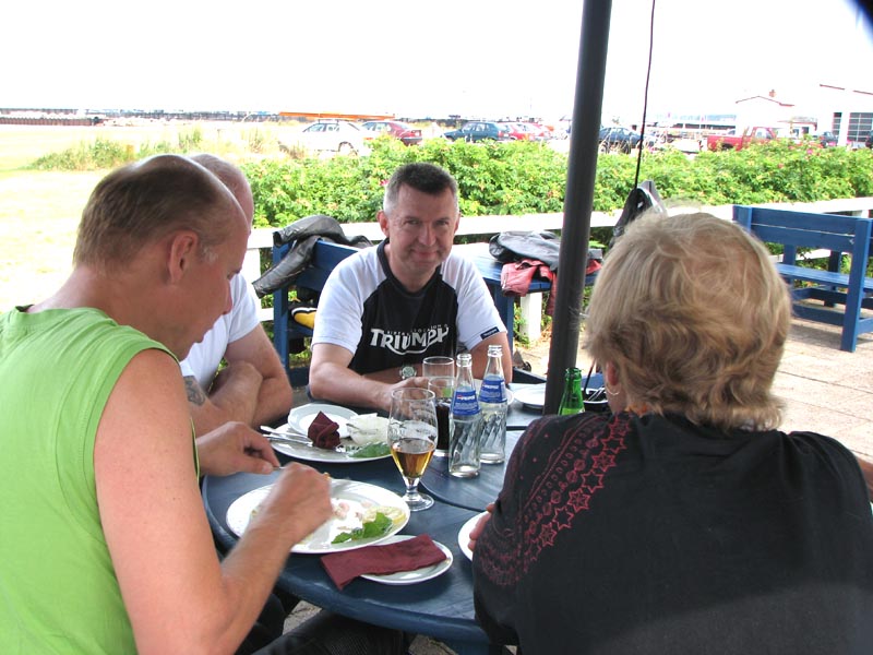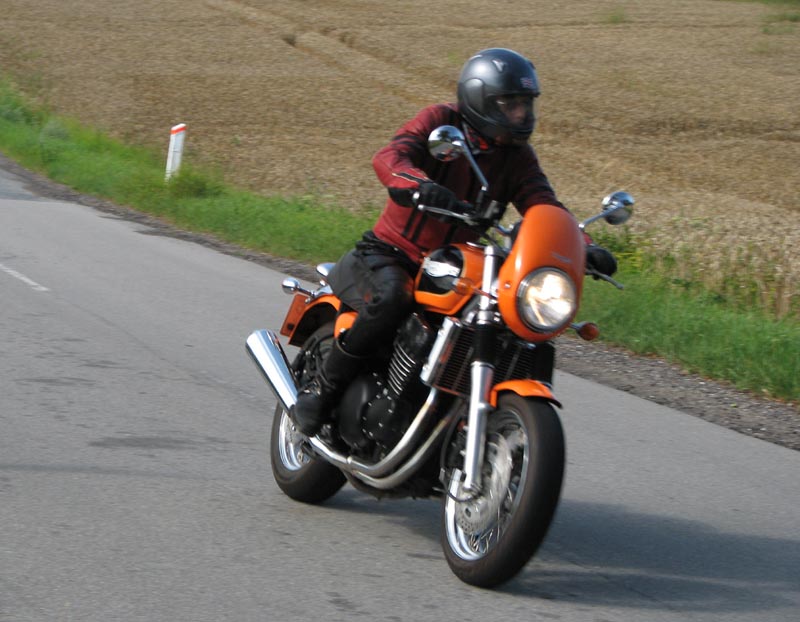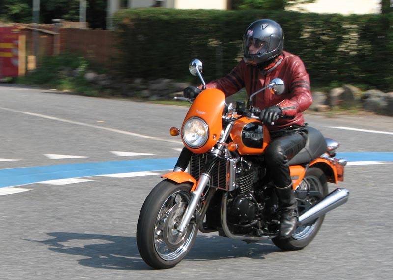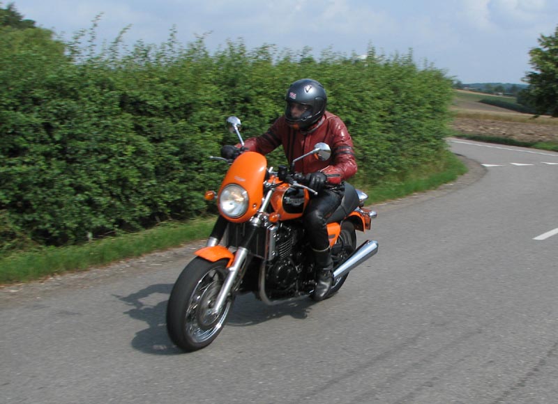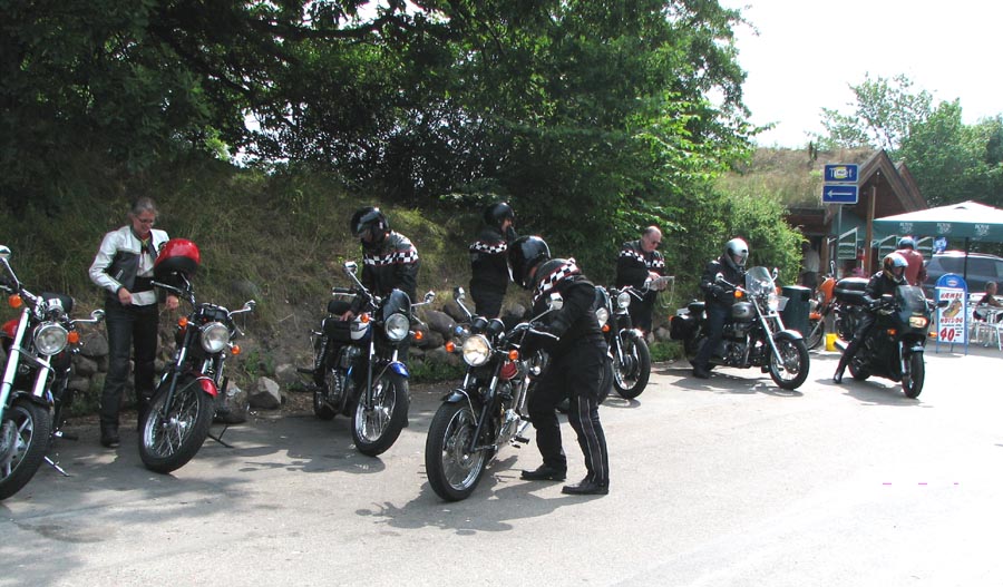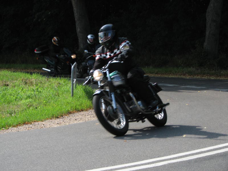 Jeg starter med at hilse på et par nye deltagere. Det er Andre på en sort Thruxton 2005