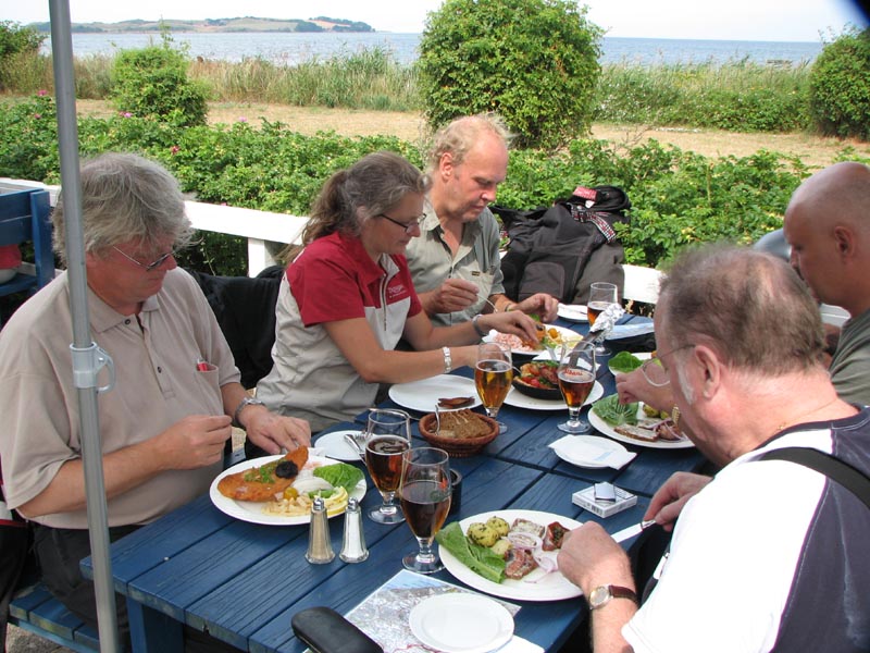 Så kommer vi til Havnsø. Her holder vi frokostpause. Klokken er 13 og vi er lidt sultne.