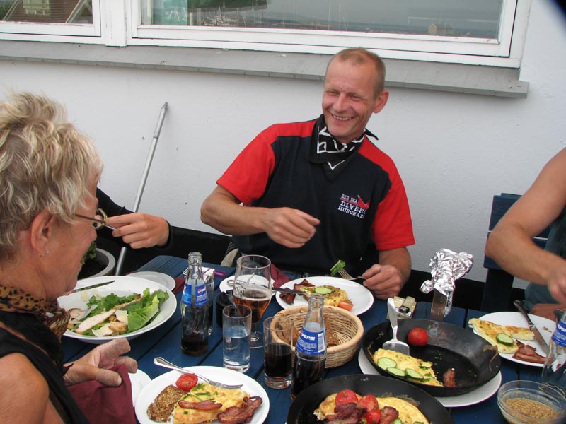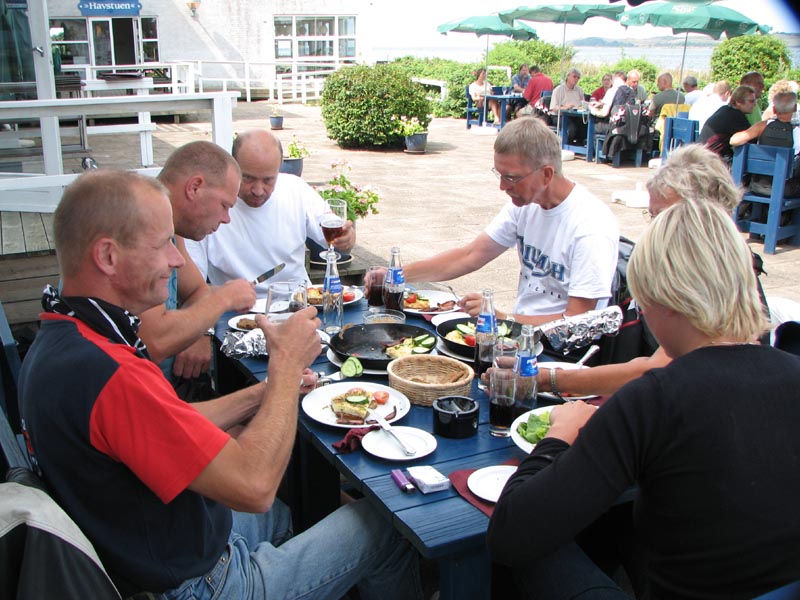 Maden kommer på bordene og vi nyder det i fulde drag denne varme søndag.