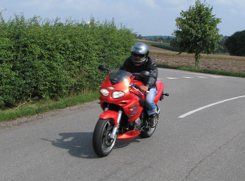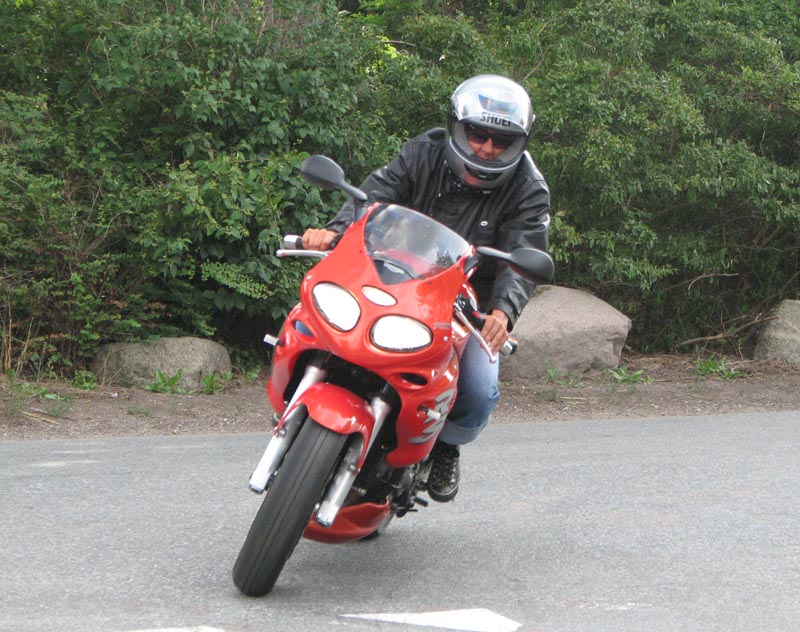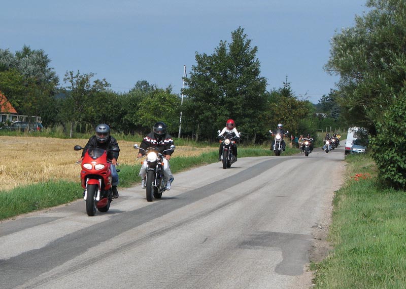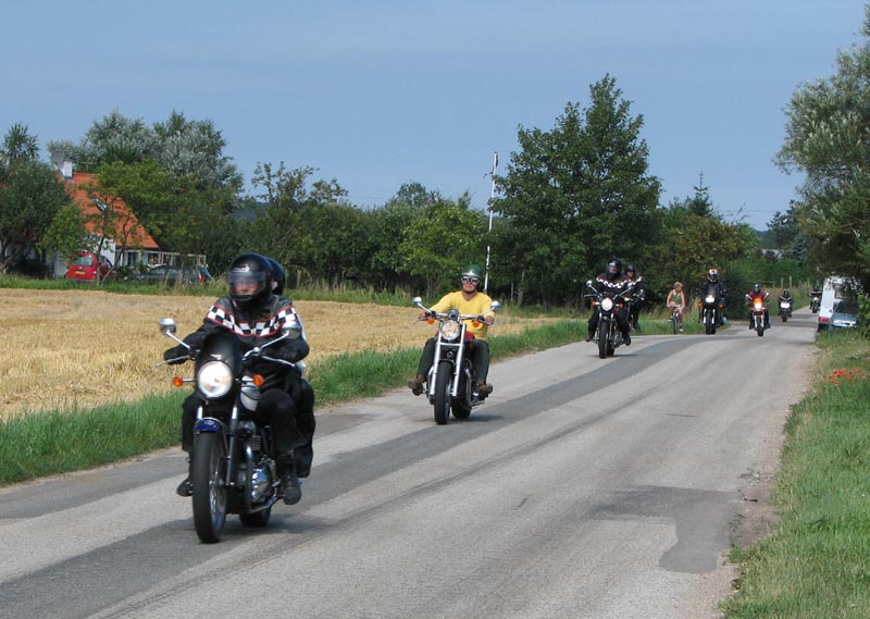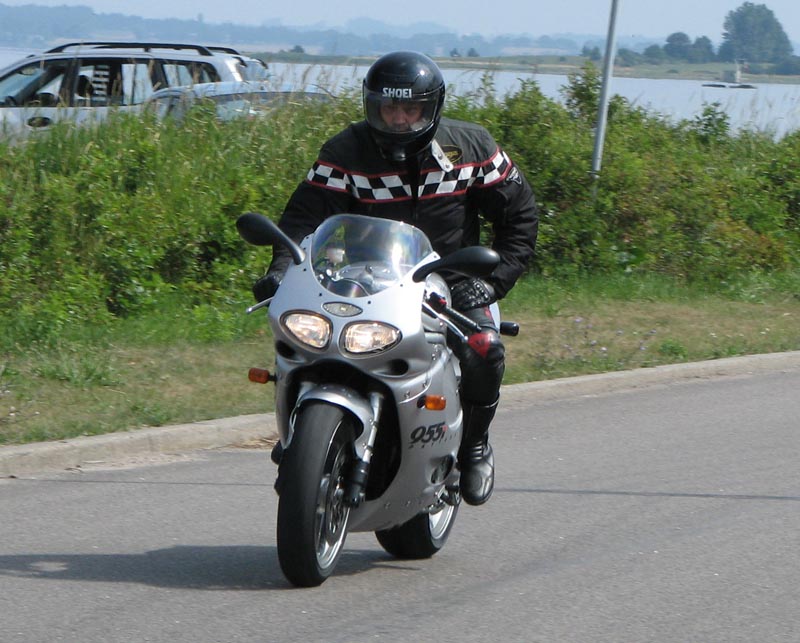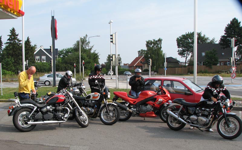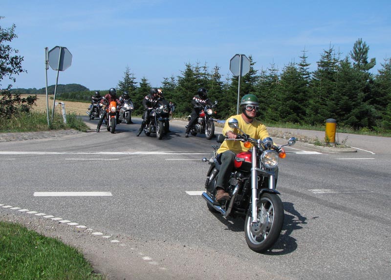 og mig selv på den sort/gule Speed Triple 2001. Vi er 14 cykler der tager af sted på