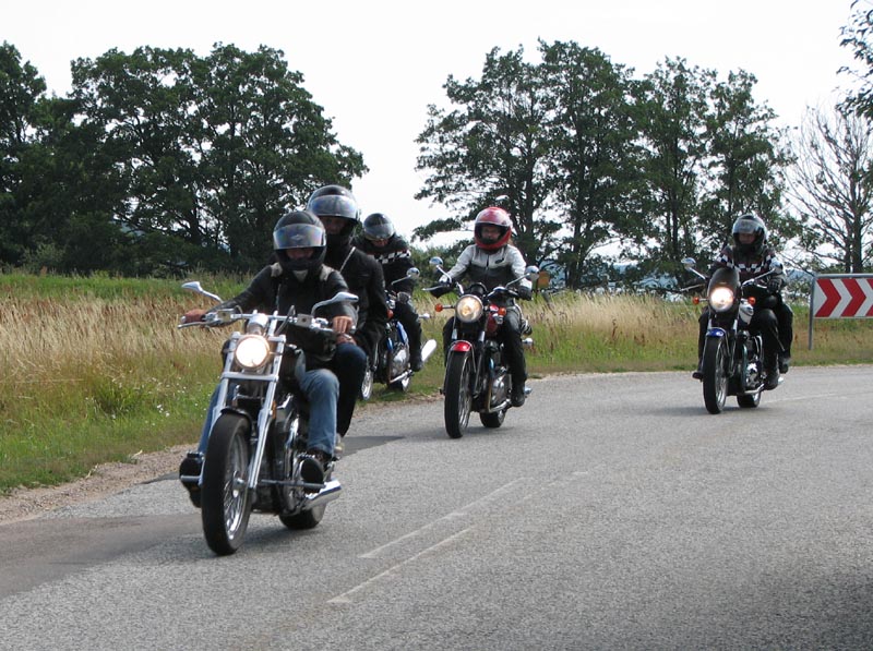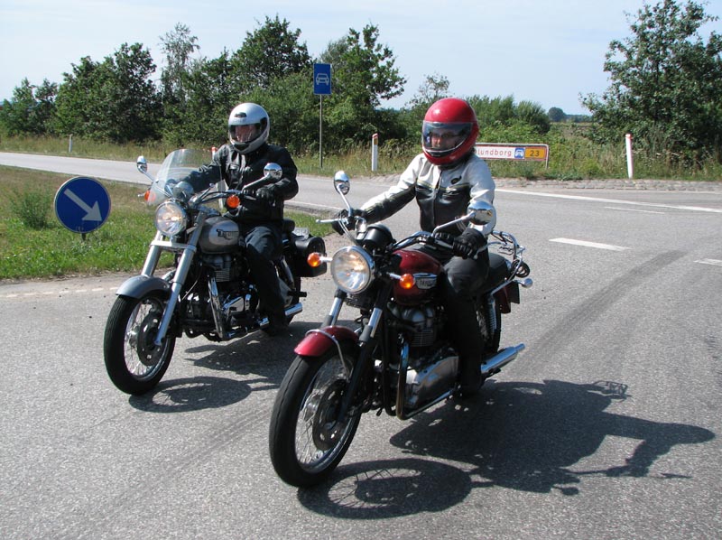 Så har vi Per på en hvid/orange Bonneville T100 2005, Peter på en rød Speedmaster 2004,