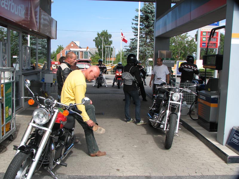 dækkene så han må ind på en tank og fylde luft på. Videre på småveje mod Roskilde.