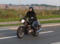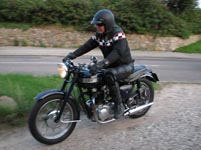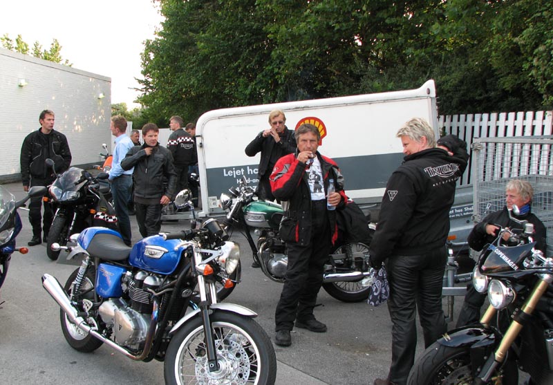 ikke køre. Jeg fik lånt en Thruxton af Hans-Jørgen til turen. Jeg løb tør for benzin på