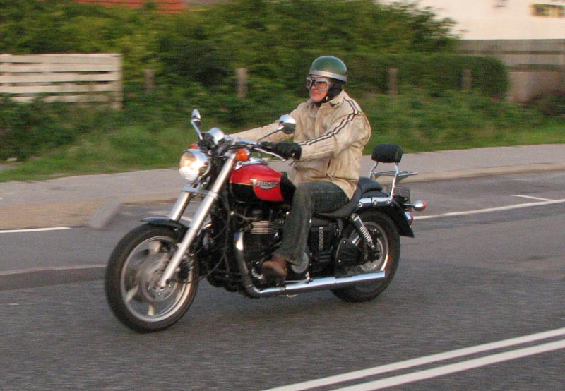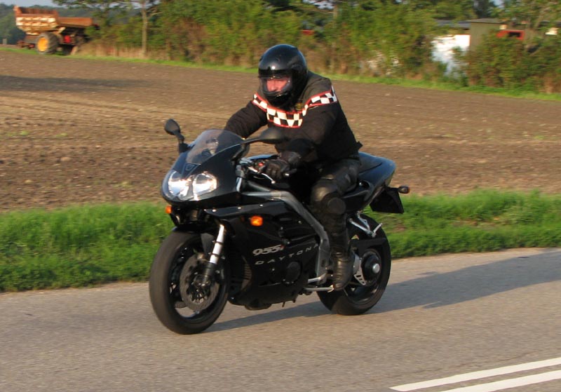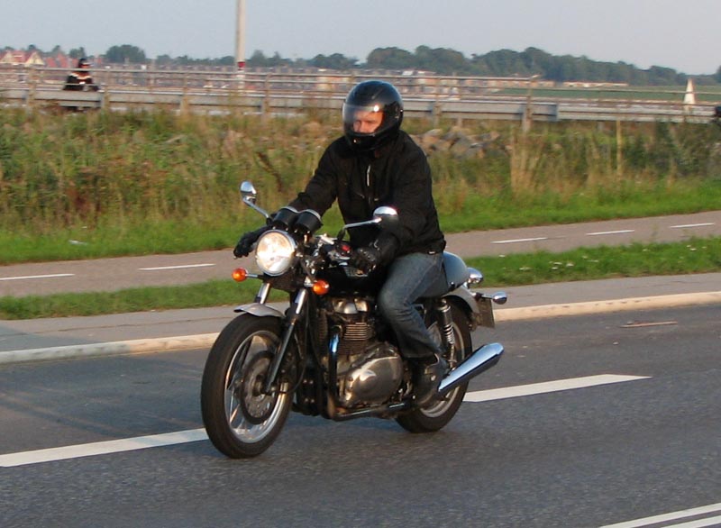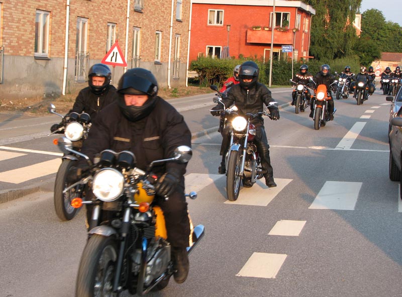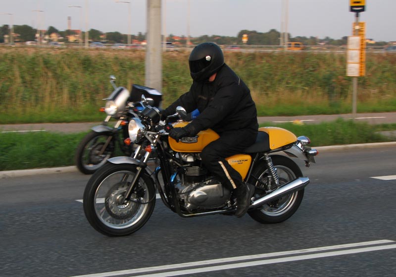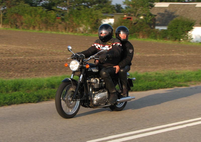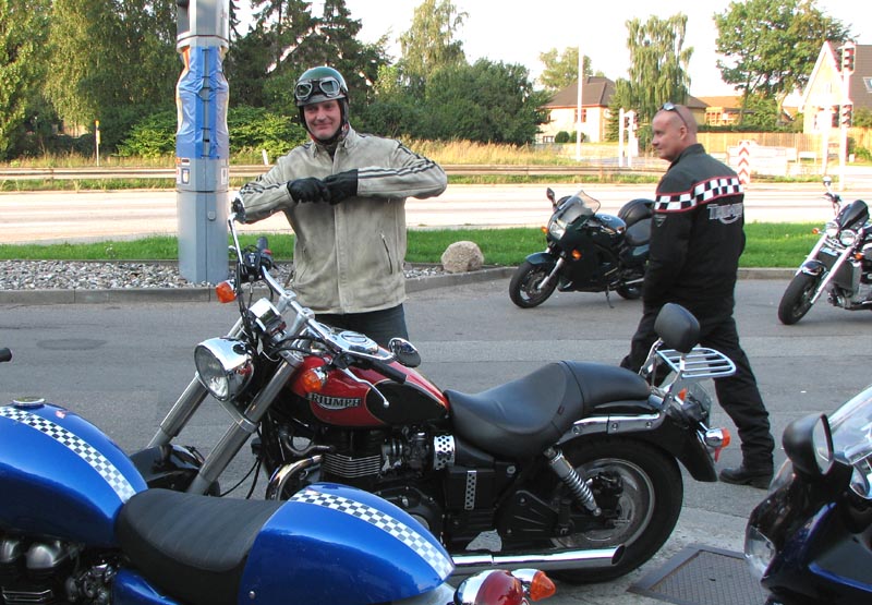 2004, Emil på en sort Thruxton 2005, og Michael på en sort Daytona 955i 2005, Niss på sin