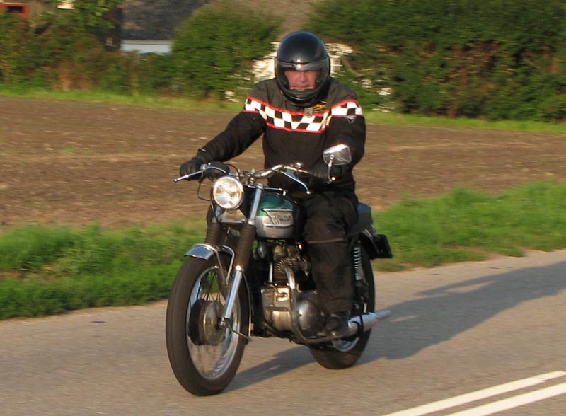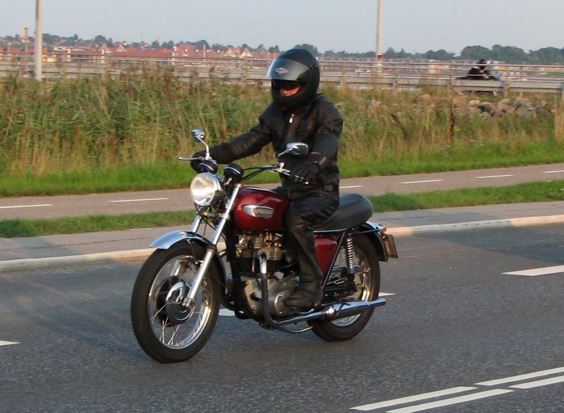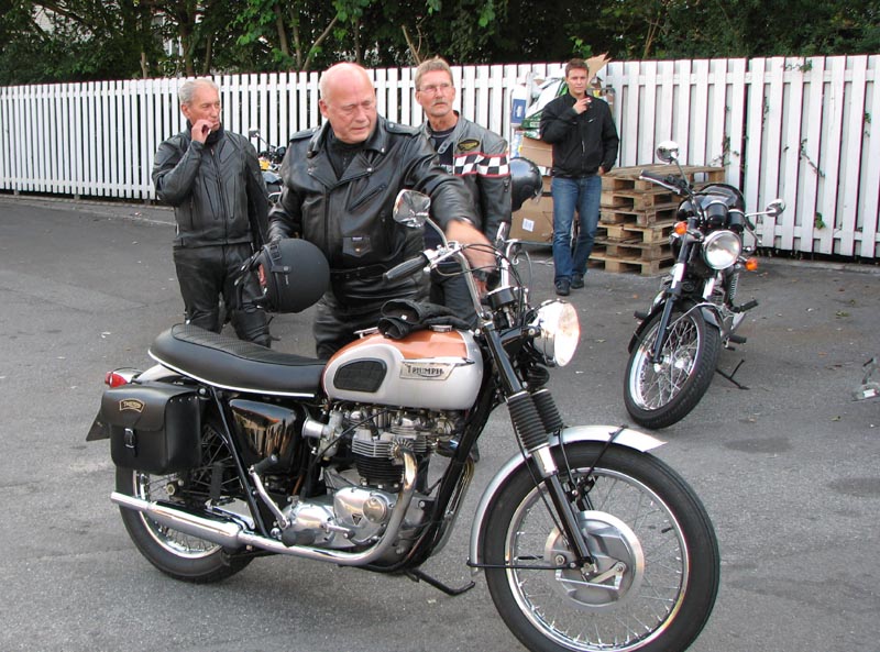 Bonneville T100 2004. Så var der Steen på mørkerød Bonneville 1968, Peter på en gul
