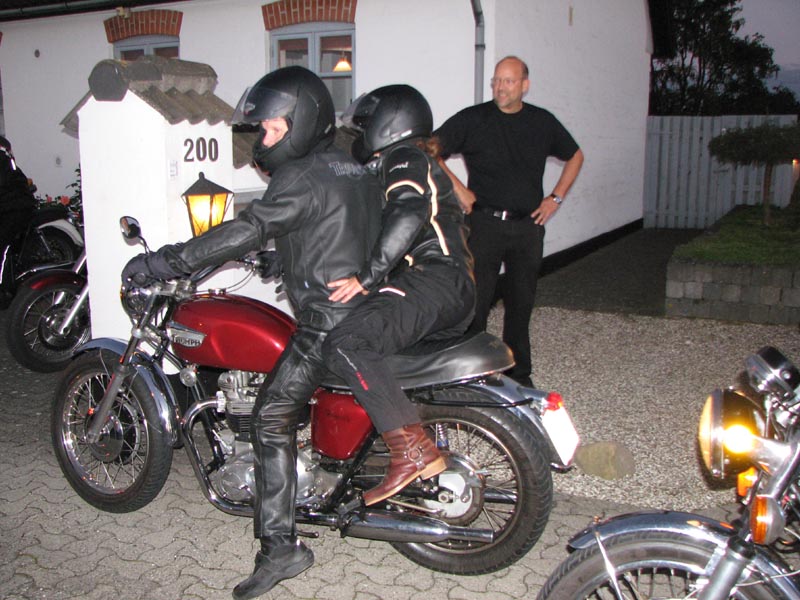 som han har fået et par uger før. Endvidere tre venner til vores Triumphdeltager, men på