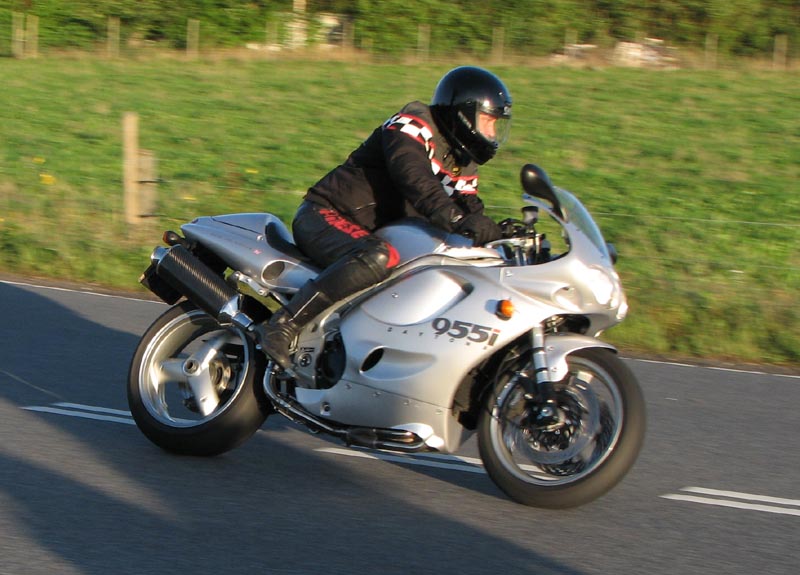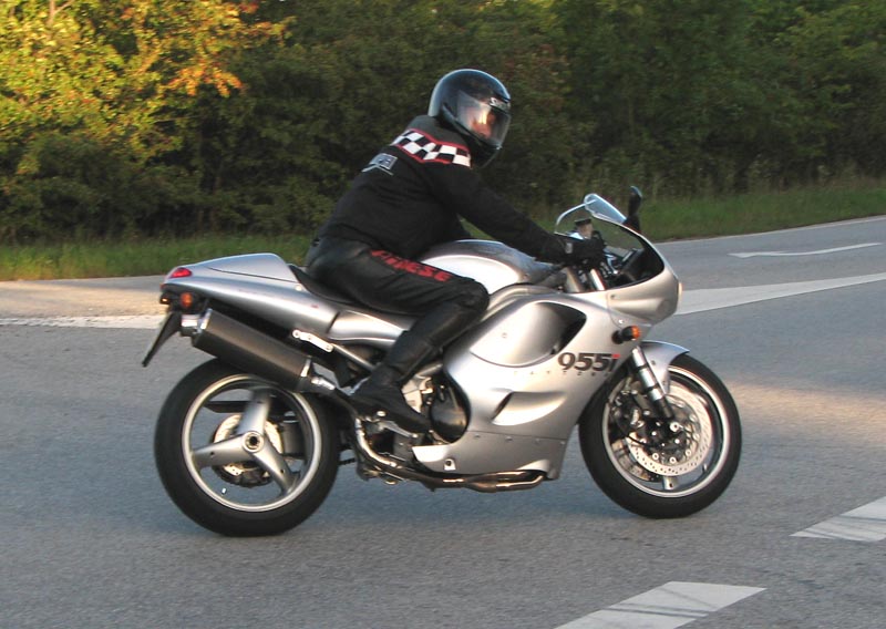 grønne Sprint RS -04, Peter på sin blå Sprint RS -04, Frank på sin sølv Daytona 955i -00,