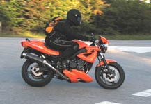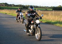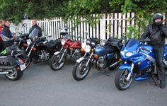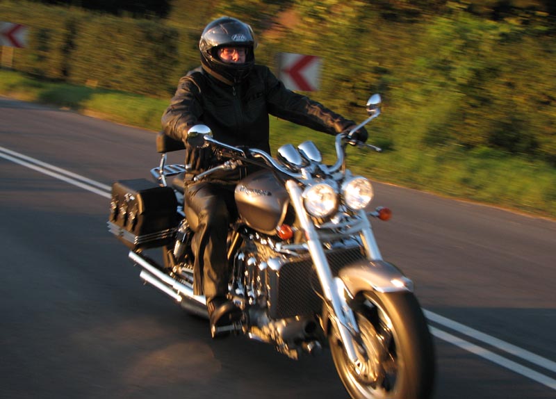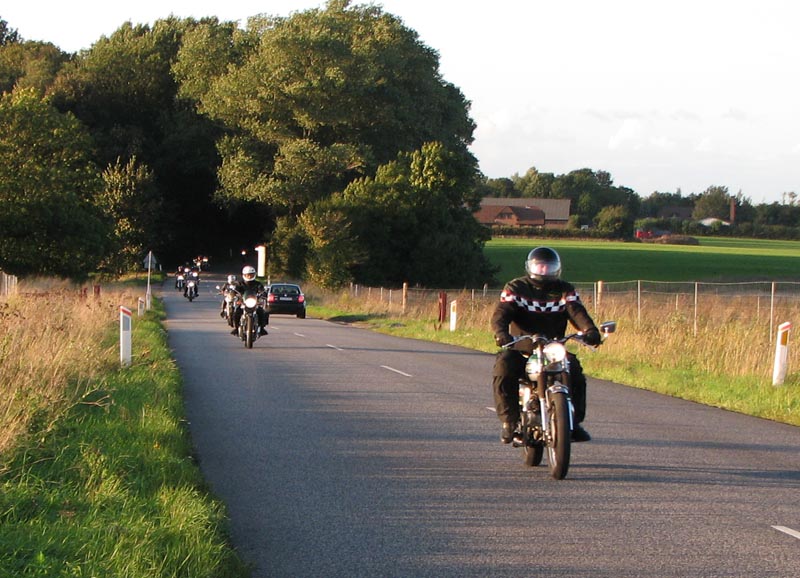 på en orange Speed Four -04, Jørgen på en sort Rocket III -06, Finn på en blå/hvide
