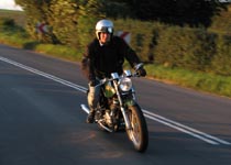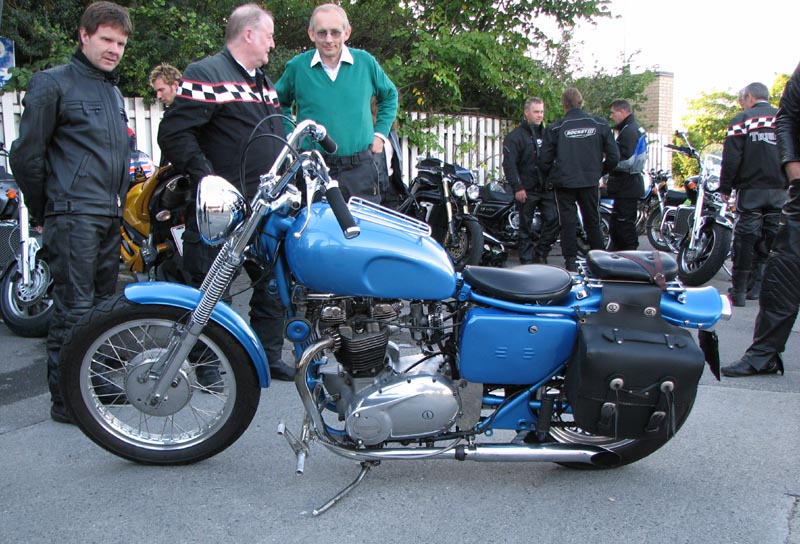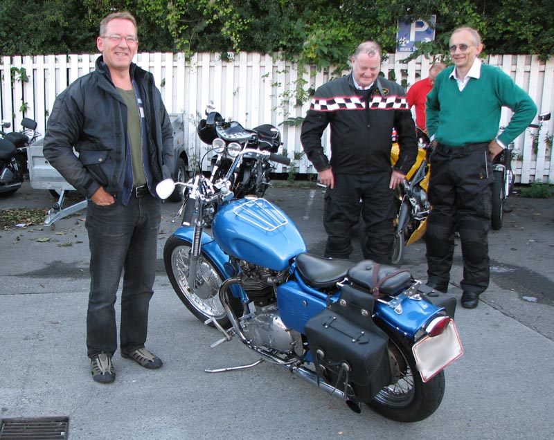 i mandags, Michael på en hjemmelavet blå cykel, en Trophy -69 motor i et AJS stel fra -61.